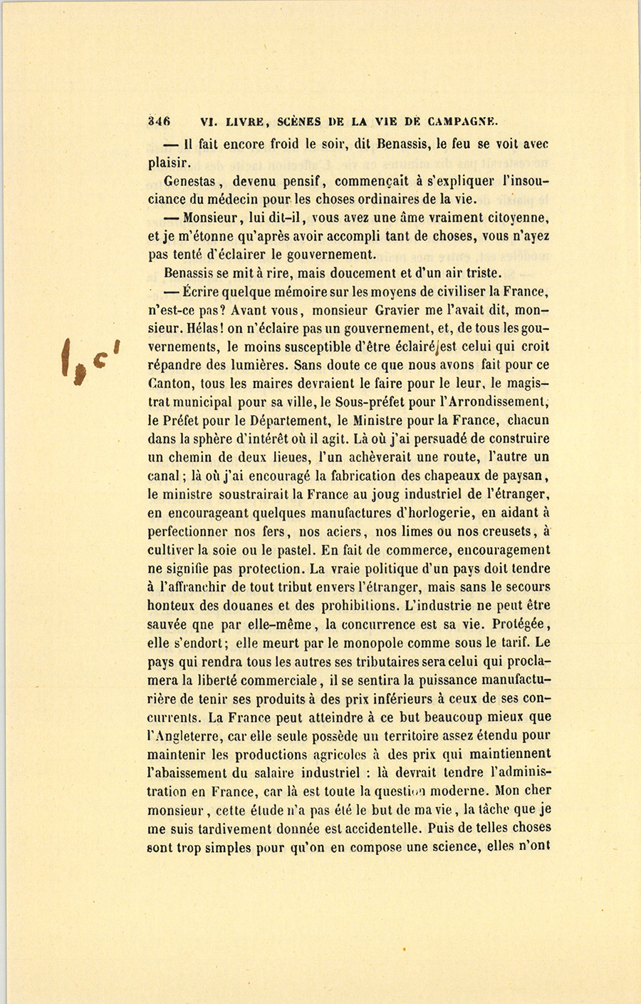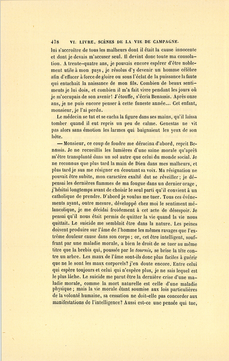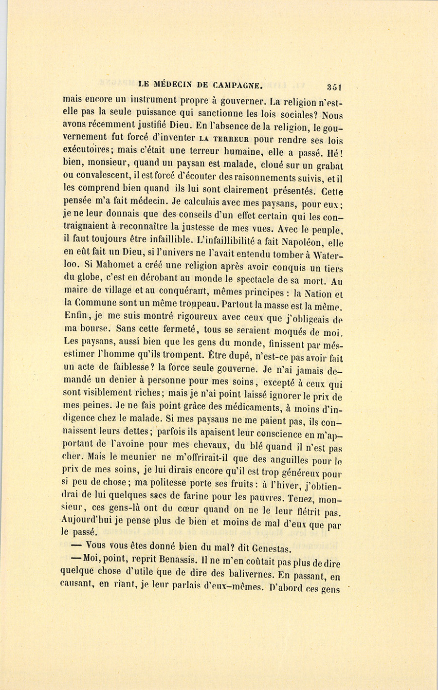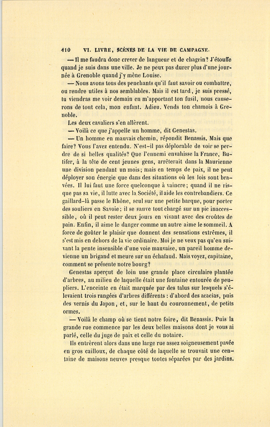 – Ah ! quel est-il ? lui demanda Benassis en ayant l’air de quitter une préoccupation et de se souvenir que son compagnon était un étranger.