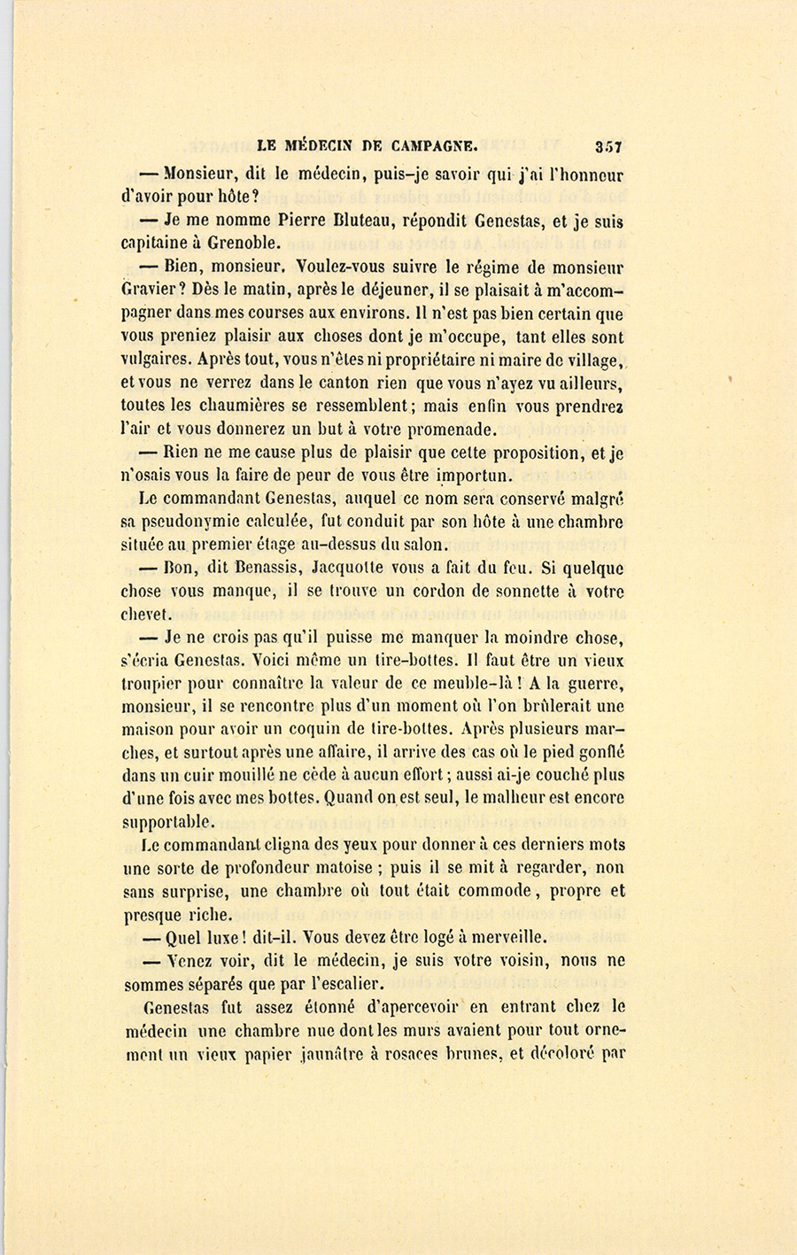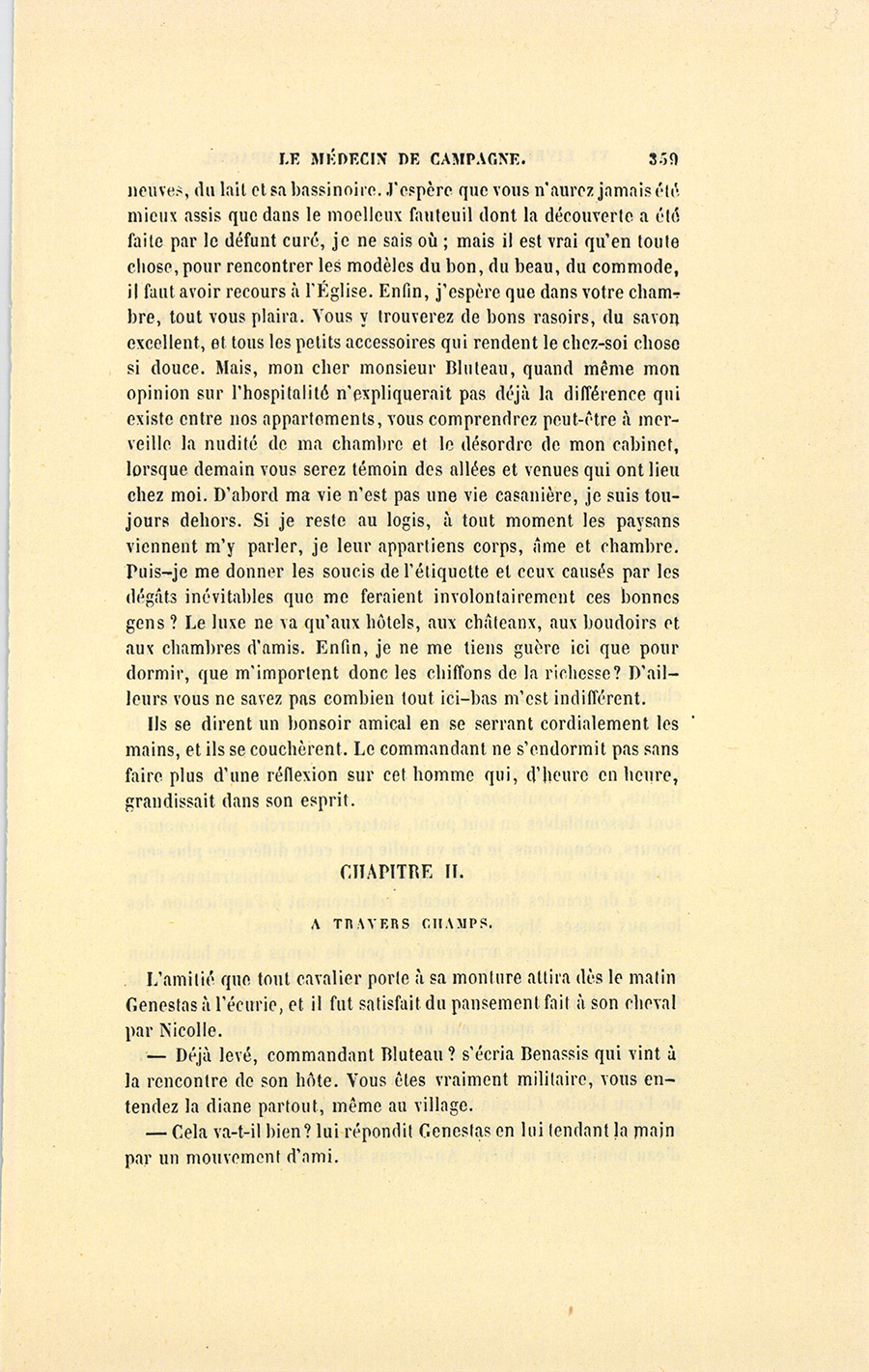 {p. 327} Par suite de son caractère franc et communicatif, il avait accueilli Genestas comme un homme de connaissance.