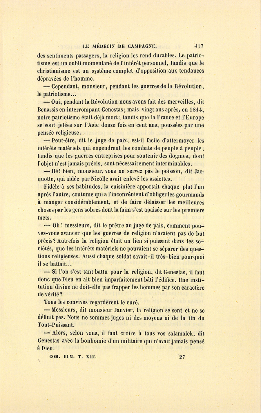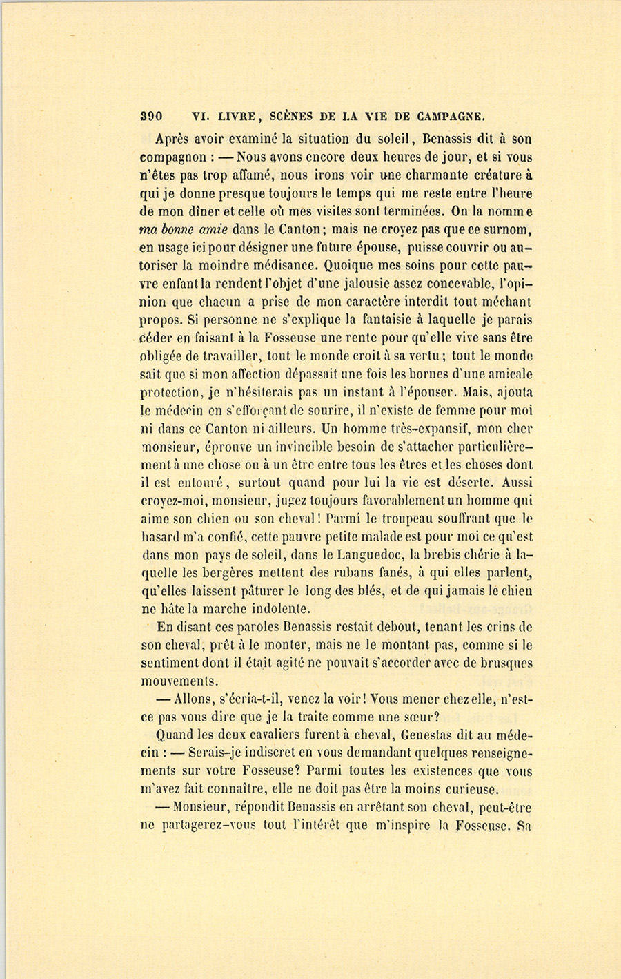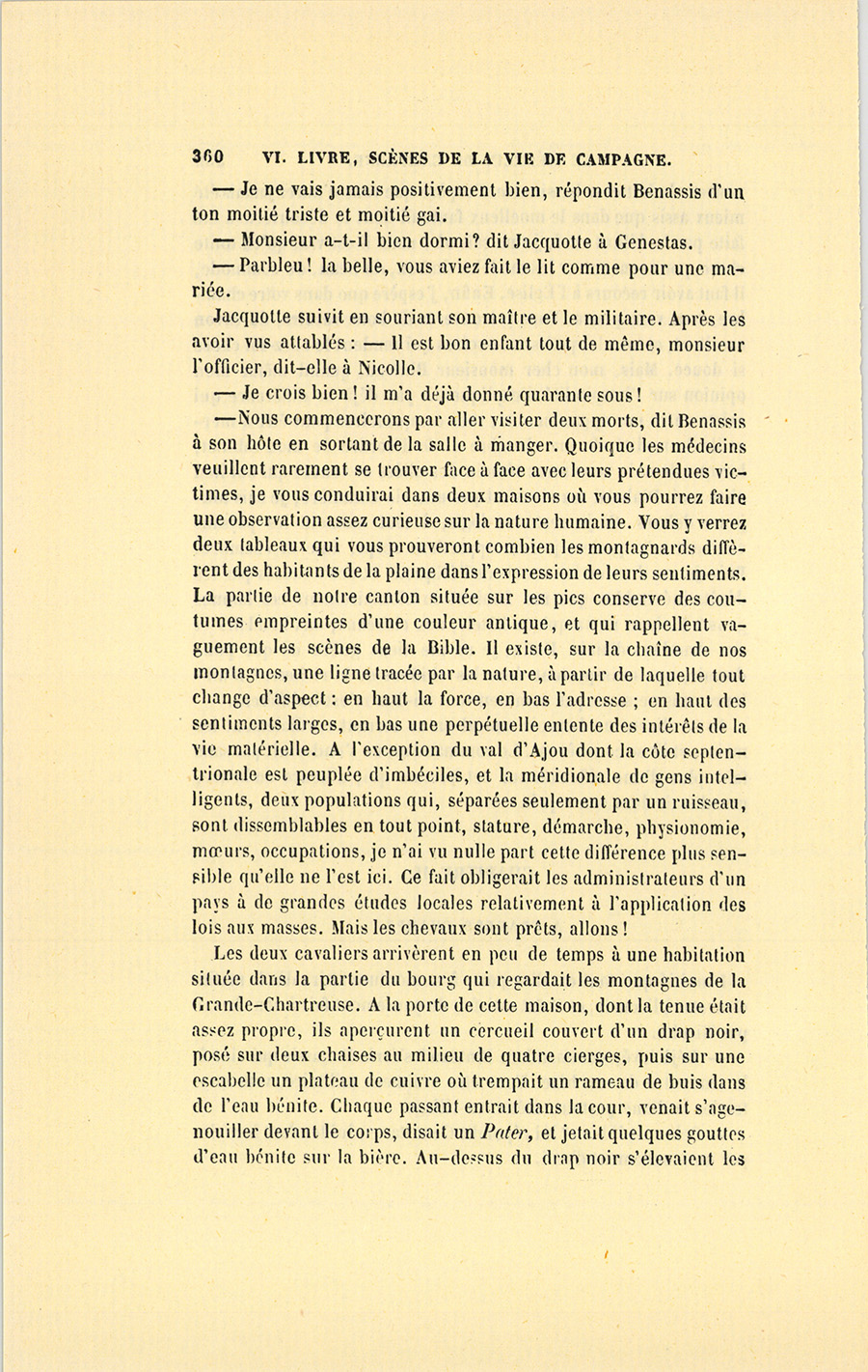 – Certes, il viendra la voir, dit Benassis. Mais revenons au logis, il faut que j’aille prendre un de mes chevaux pour faire une {p. 501} course assez longue. Pendant mon absence vous vous entendrez avec Jacquotte.