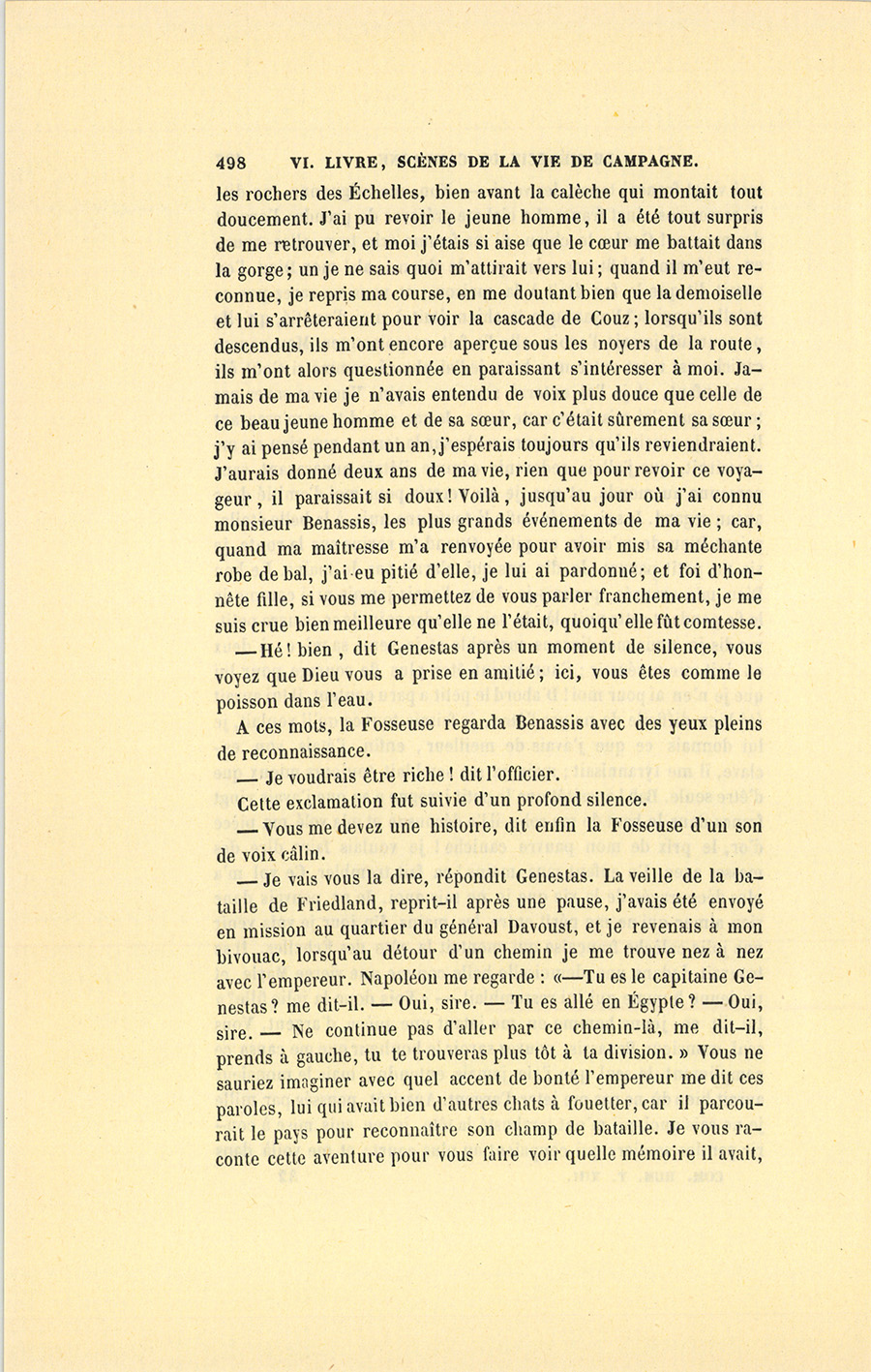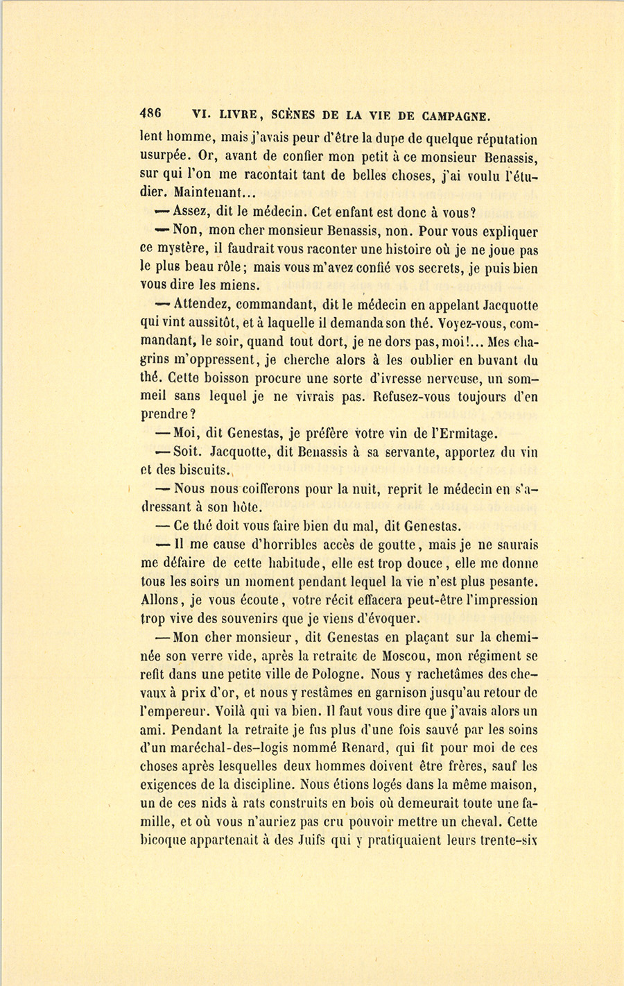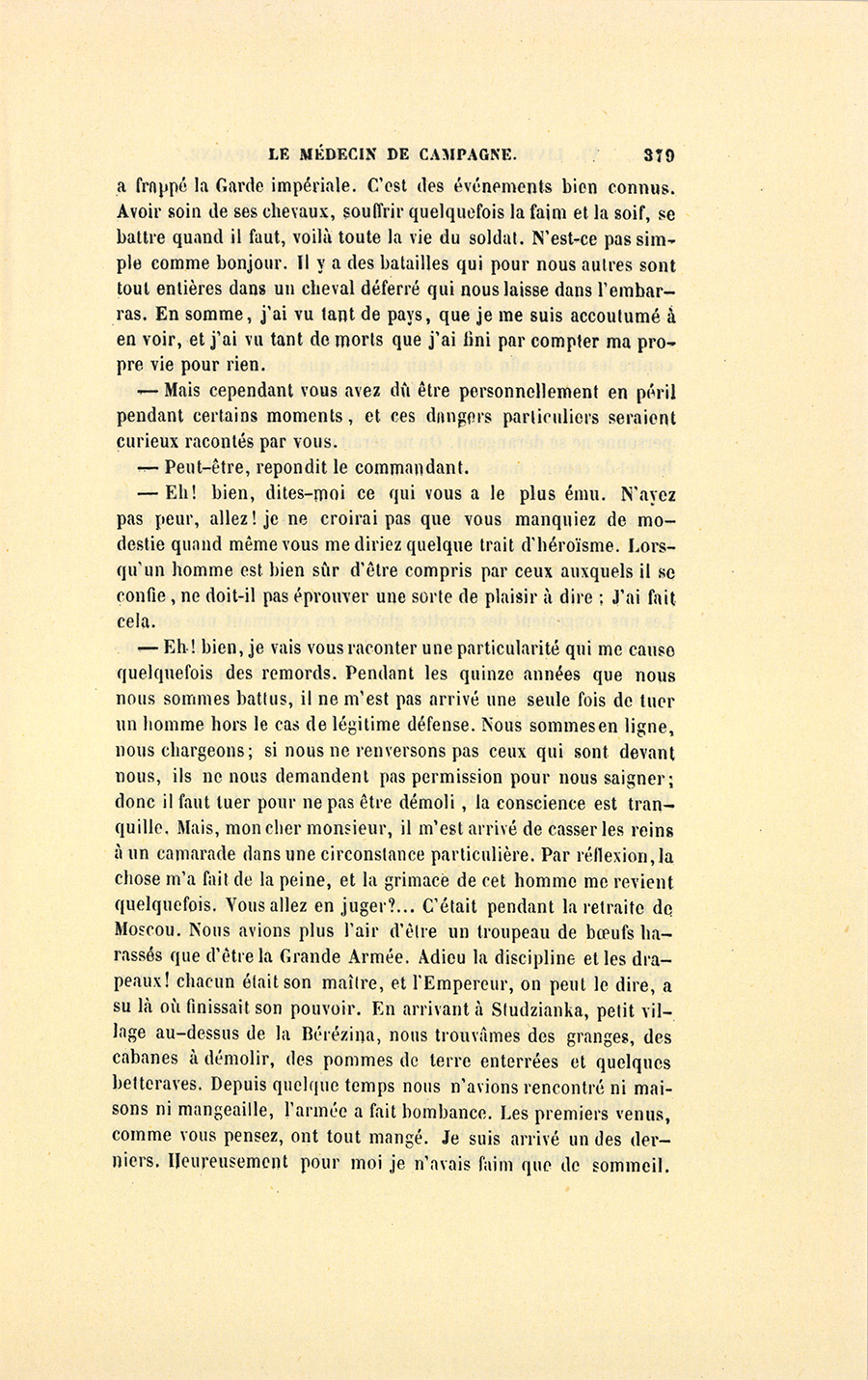 – Commandant, dit Benassis, vous savez à quel prix vous recevez ici l’hospitalité. Vous devez conter à ma Fosseuse quelque chose de militaire.