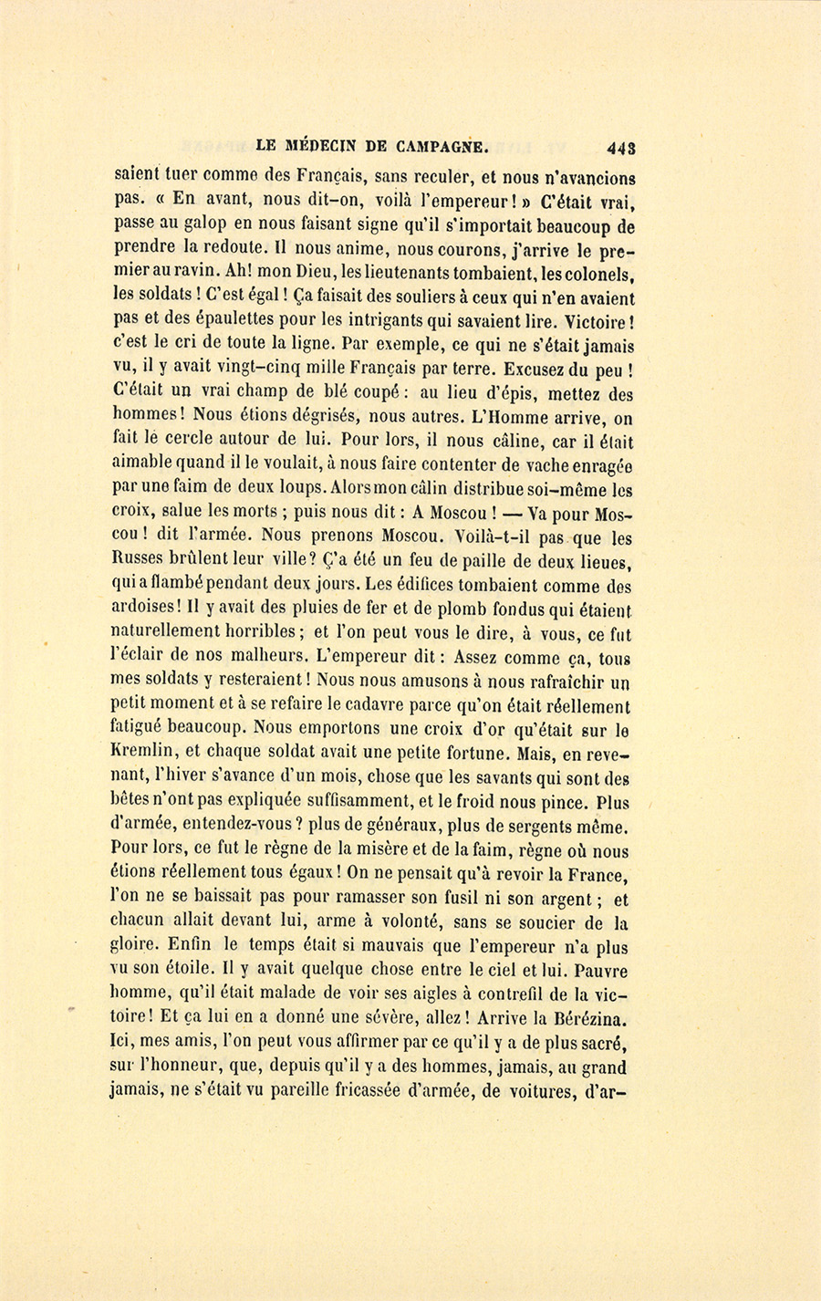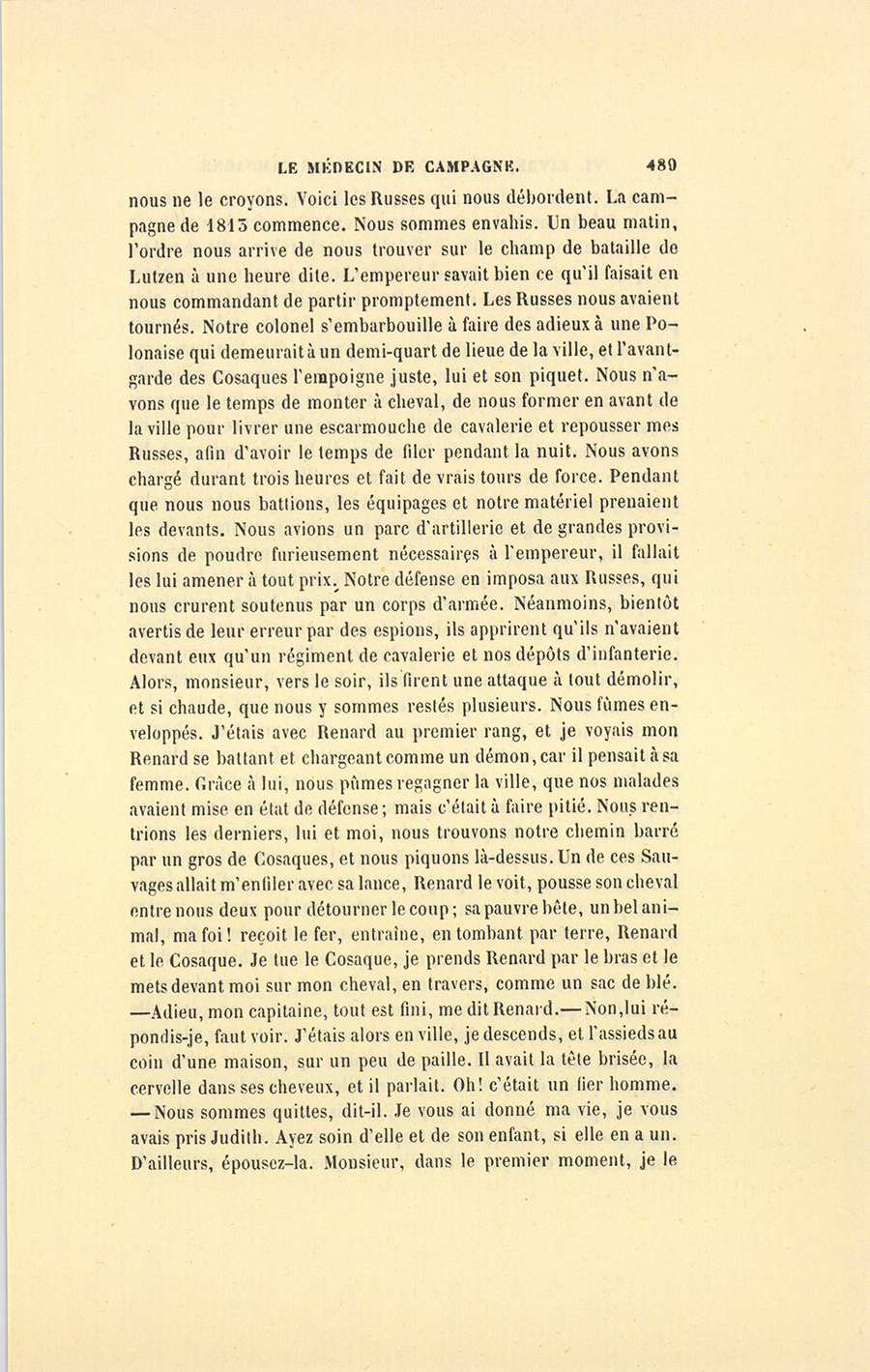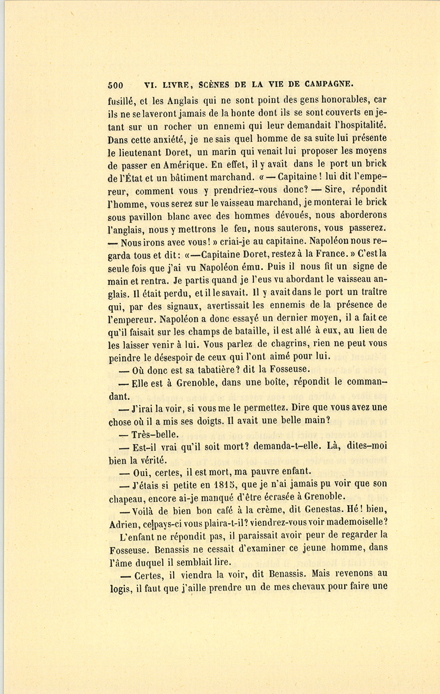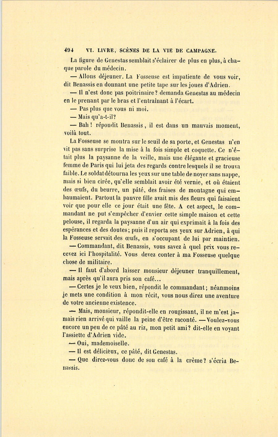– Commandant, dit Benassis, vous savez à quel prix vous recevez ici l’hospitalité. Vous devez conter à ma Fosseuse quelque chose de militaire.