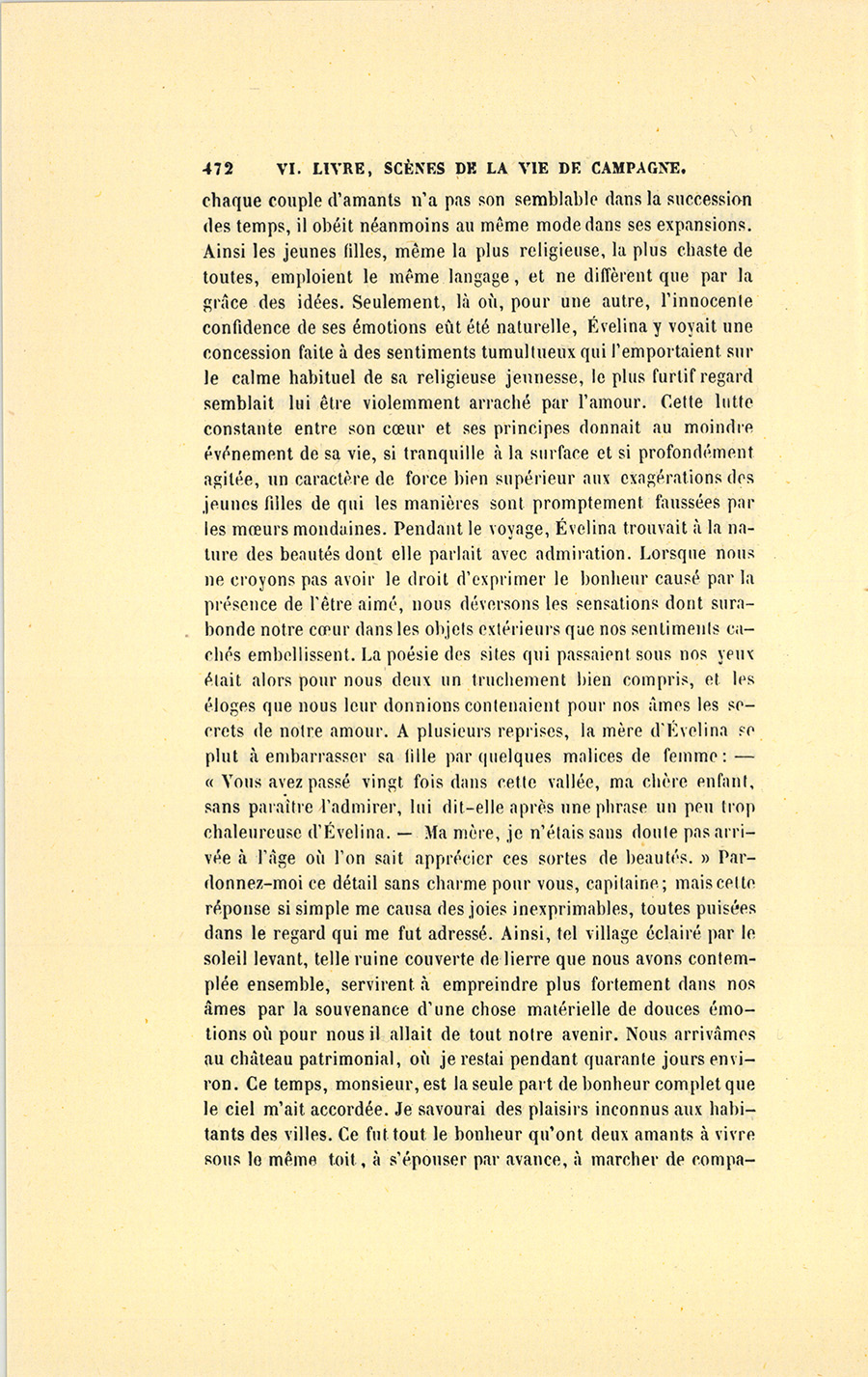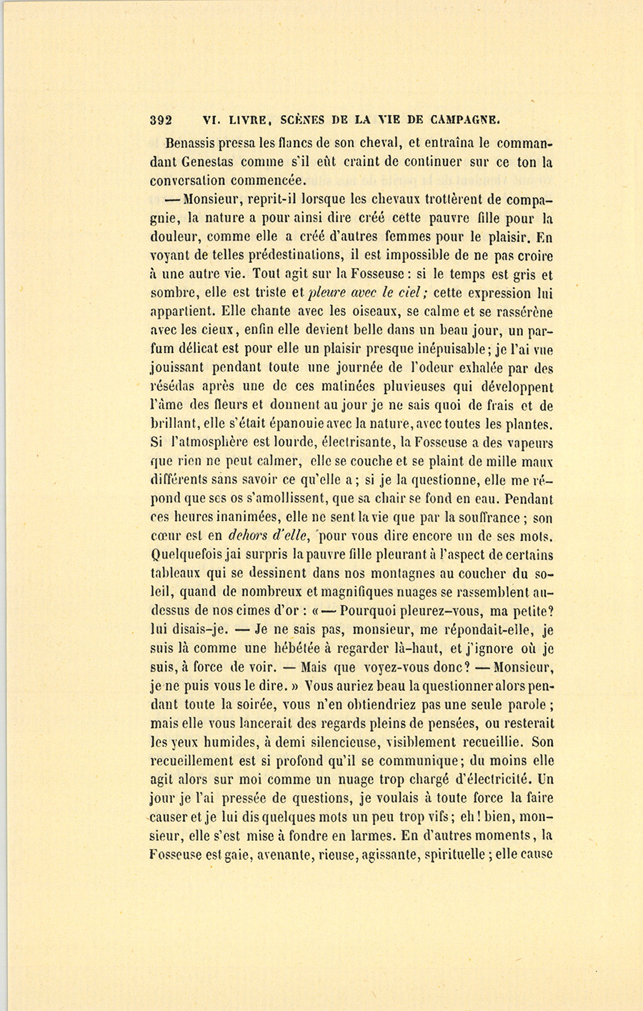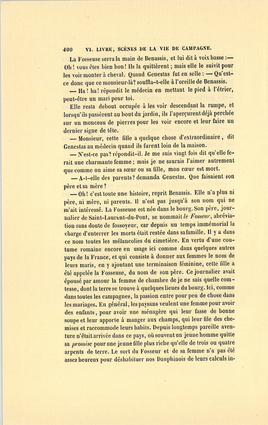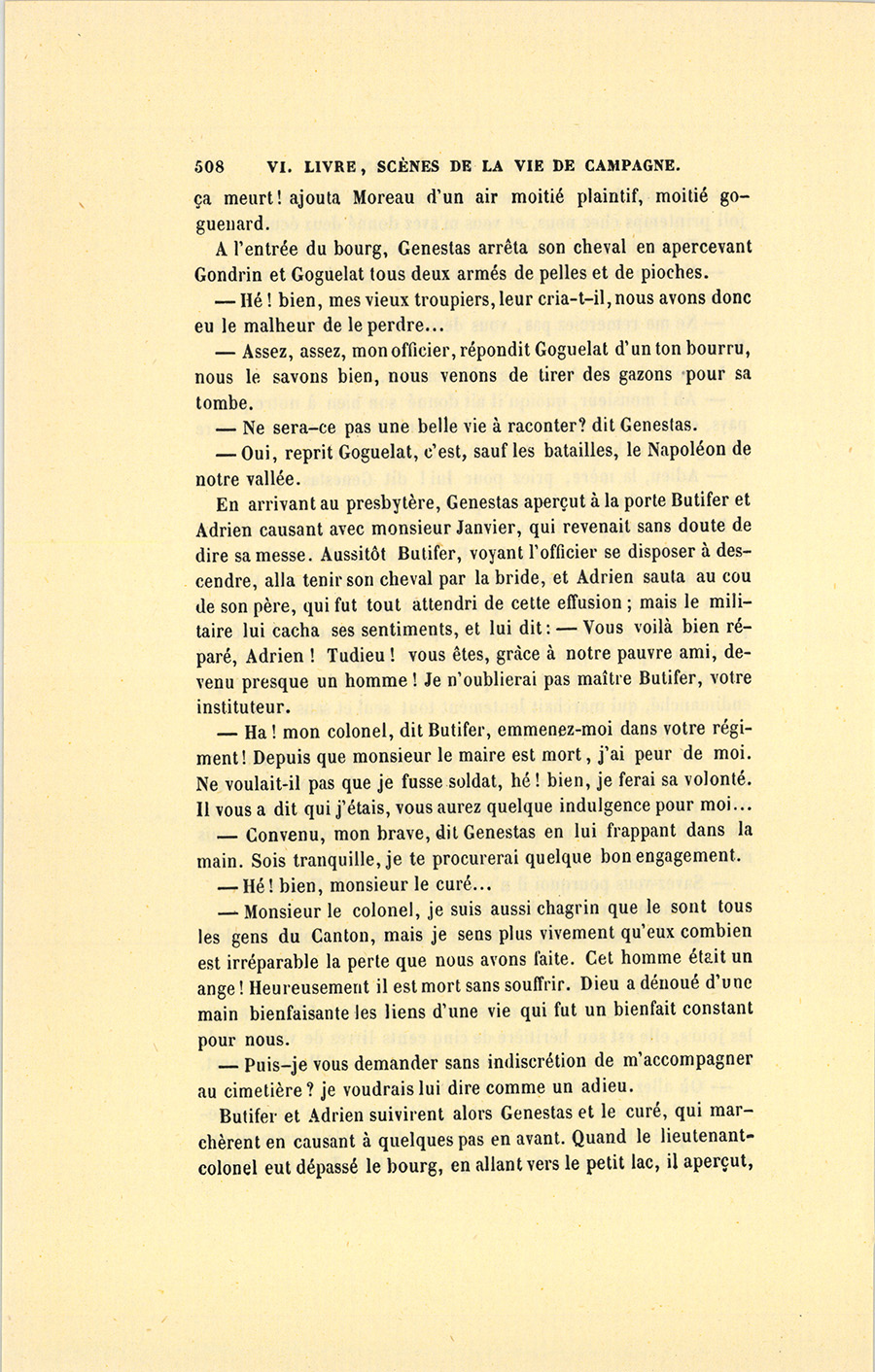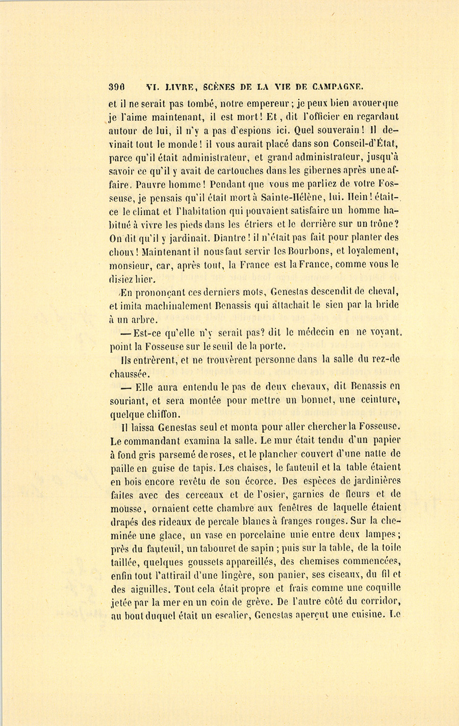 Après être demeuré silencieux pendant un moment, et s’être approché de la Fosseuse qui ne l’entendit pas, Genestas dit au curé : – Dès que j’aurai ma retraite, je viendrai finir mes jours parmi vous.
