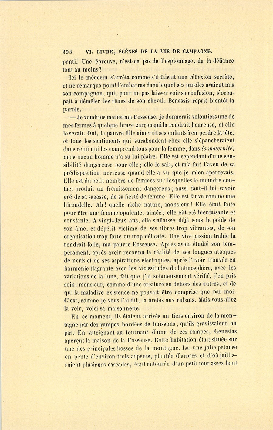 Ils se mirent en route pour revenir chez le médecin, et la Fosseuse, que cette compagnie rendait gaie, les conduisit par de petits sentiers à travers les endroits les plus sauvages de la montagne.