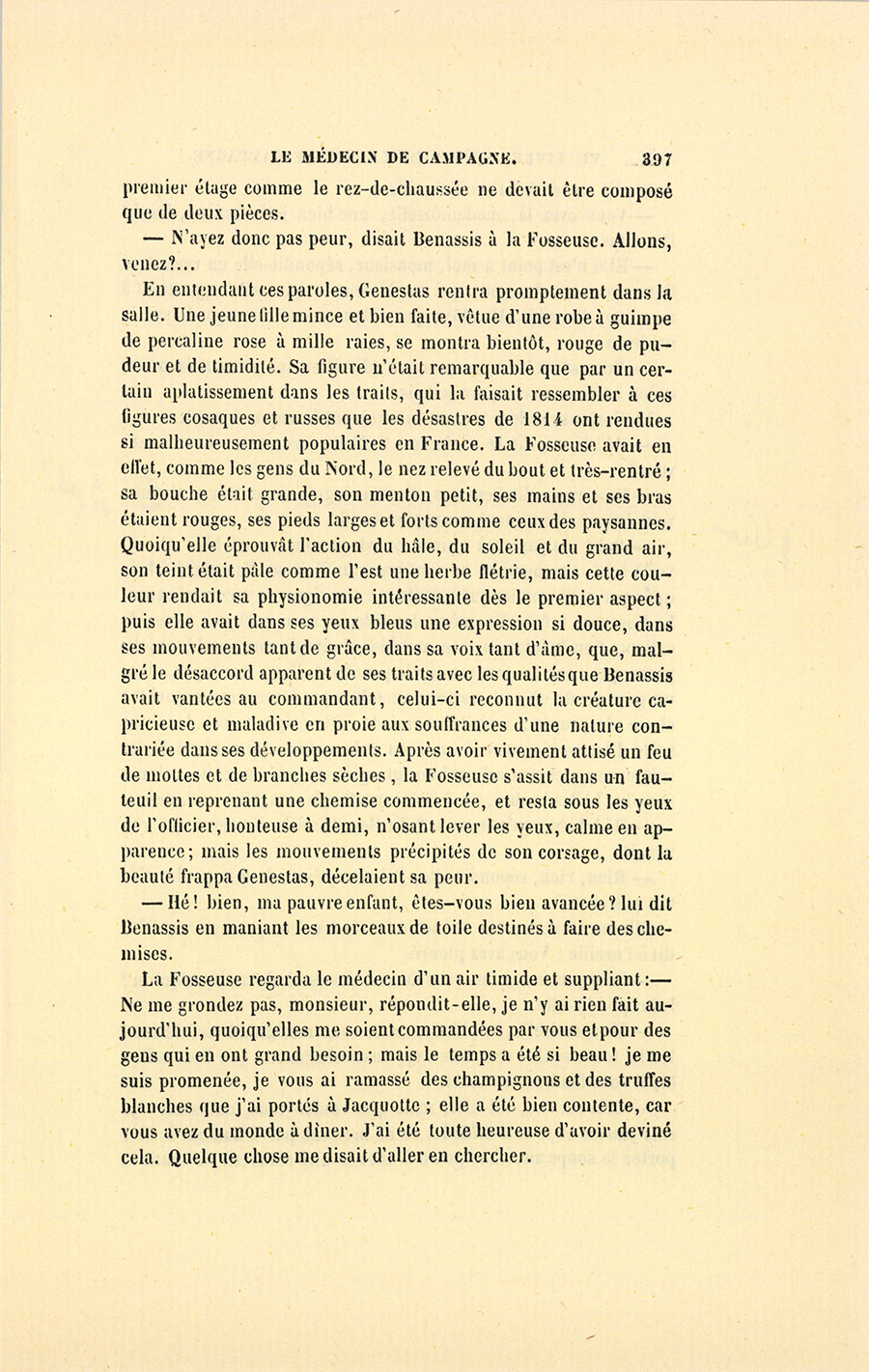 À ces mots, la Fosseuse regarda Benassis avec des yeux pleins de reconnaissance.