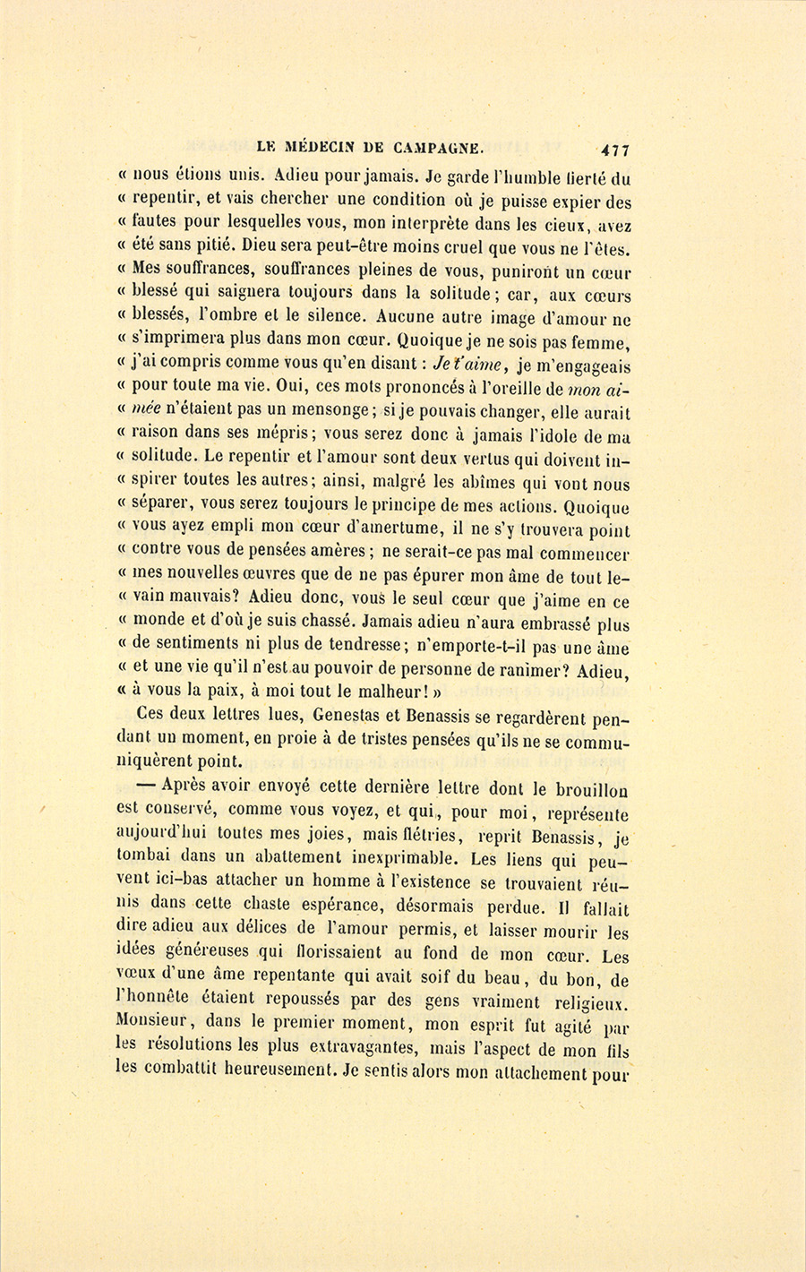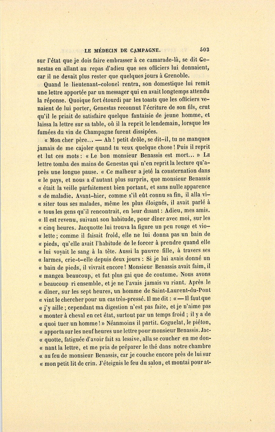 La lettre tomba des mains de Genestas qui n’en reprit la lecture qu’après une longue pause.