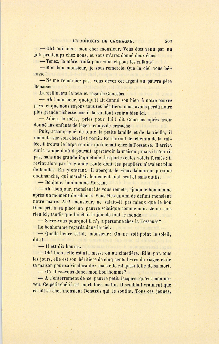 {p. 507} – Oh ! oui bien, mon cher monsieur. Vous êtes venu par un joli printemps chez nous, et vous m’avez donné deux écus.