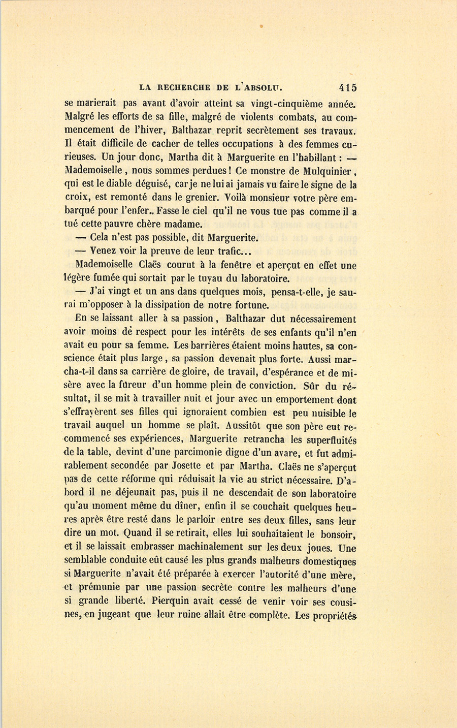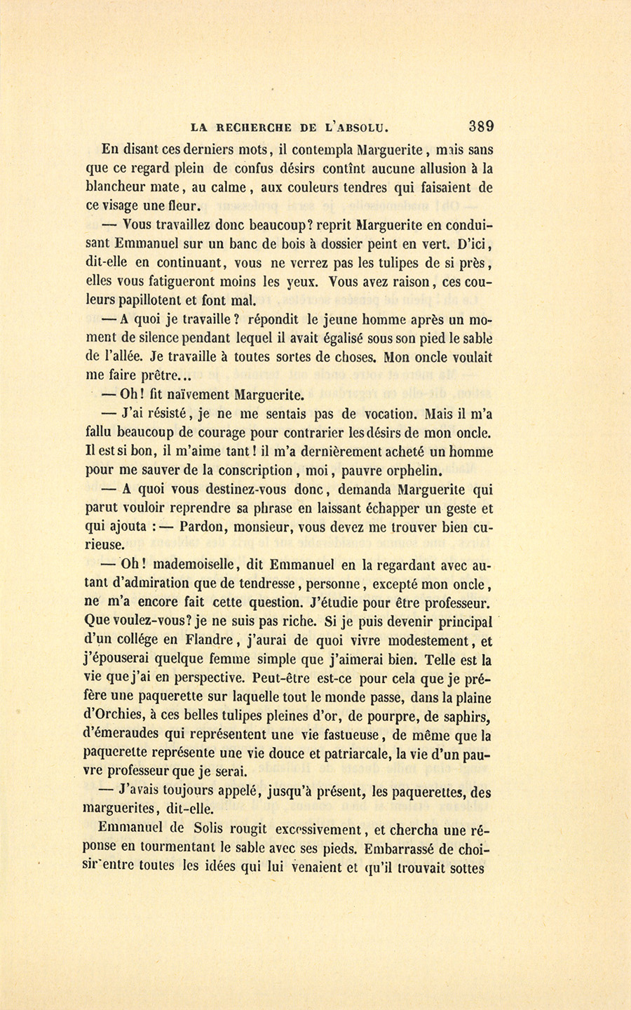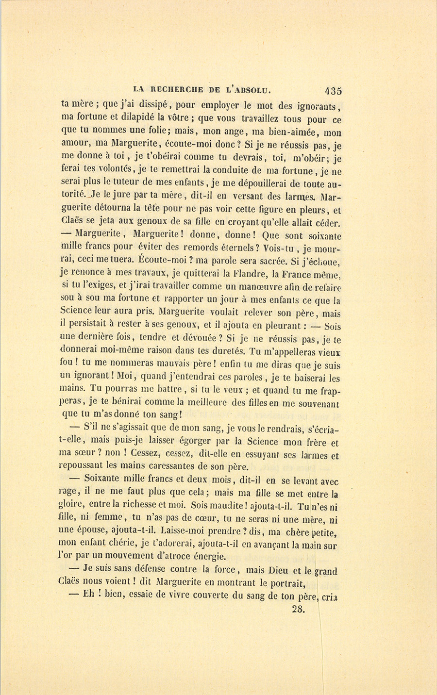 – Ah ! dit-elle, je me jetterais dans le feu de l’enfer qui attise tes fourneaux pour entendre ce mot de ta bouche et pour te voir ainsi. En entendant le pas de sa fille dans l’antichambre, elle s’y élança vivement. – Que voulez-vous, Marguerite ? dit-elle à sa fille aînée.