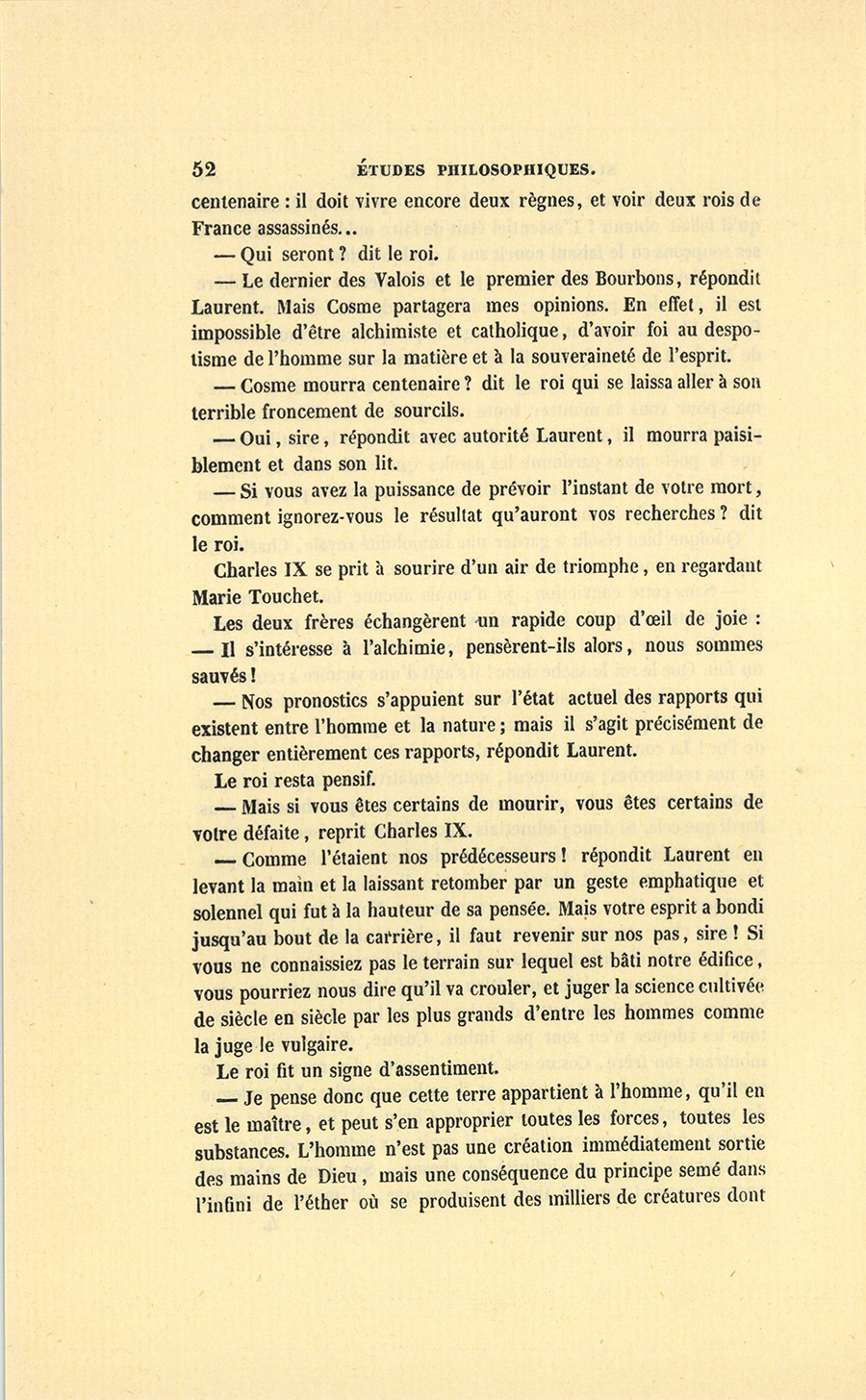 – Je ne sais, reprit-il, si la figure évoquée me suivit en se rendant invisible ; mais aussitôt que ma tête reposa sur mon lit, je vis la grande ombre de Catherine se lever devant moi. Je me sentis, instinctivement, dans une sphère lumineuse, car mes yeux attachés sur la reine par une insupportable fixité ne virent qu’elle. Tout à coup elle se pencha vers moi…