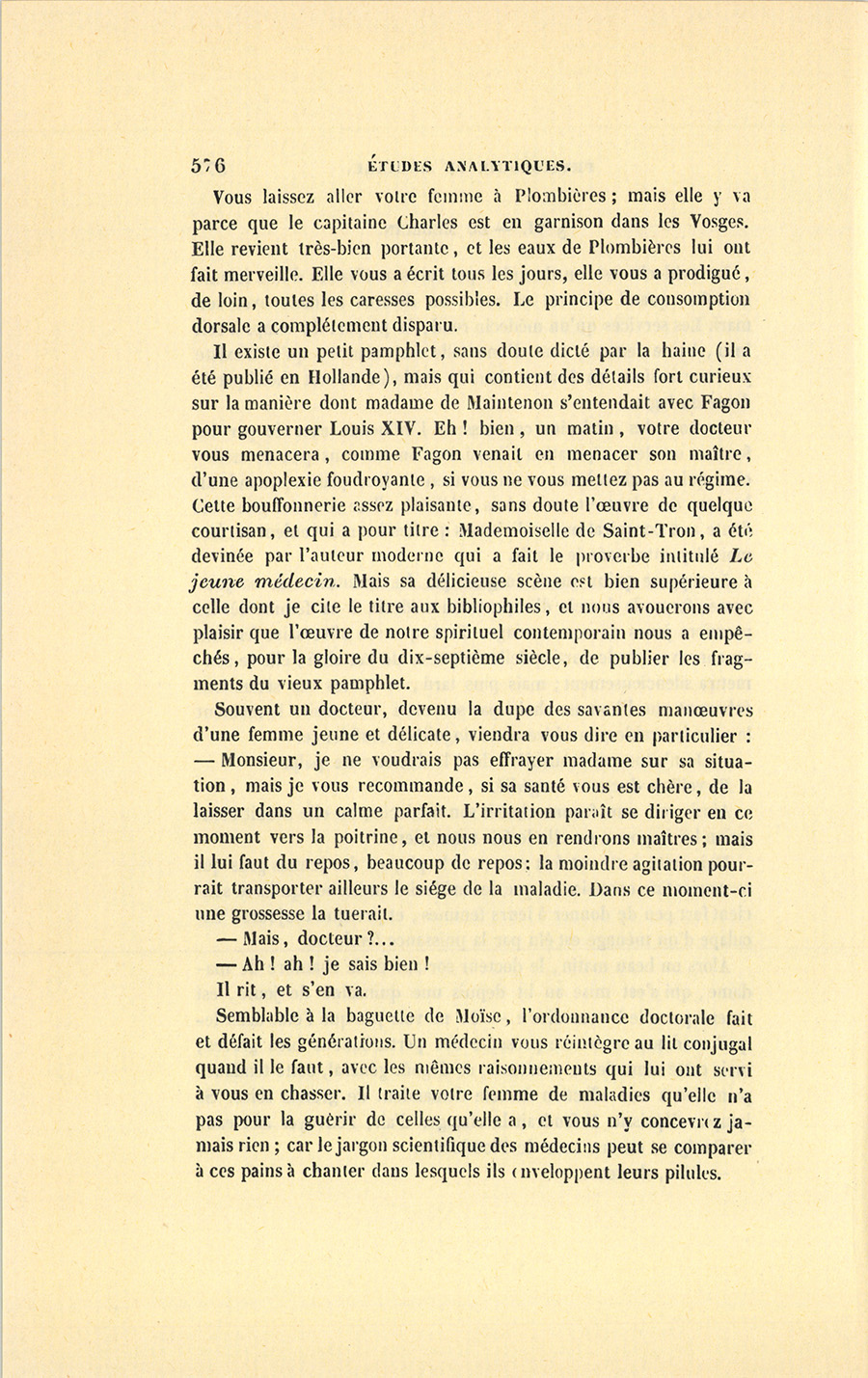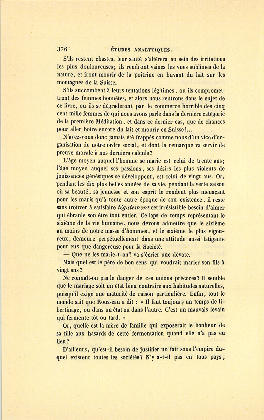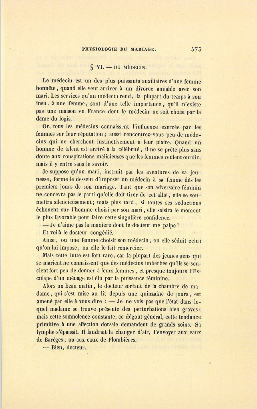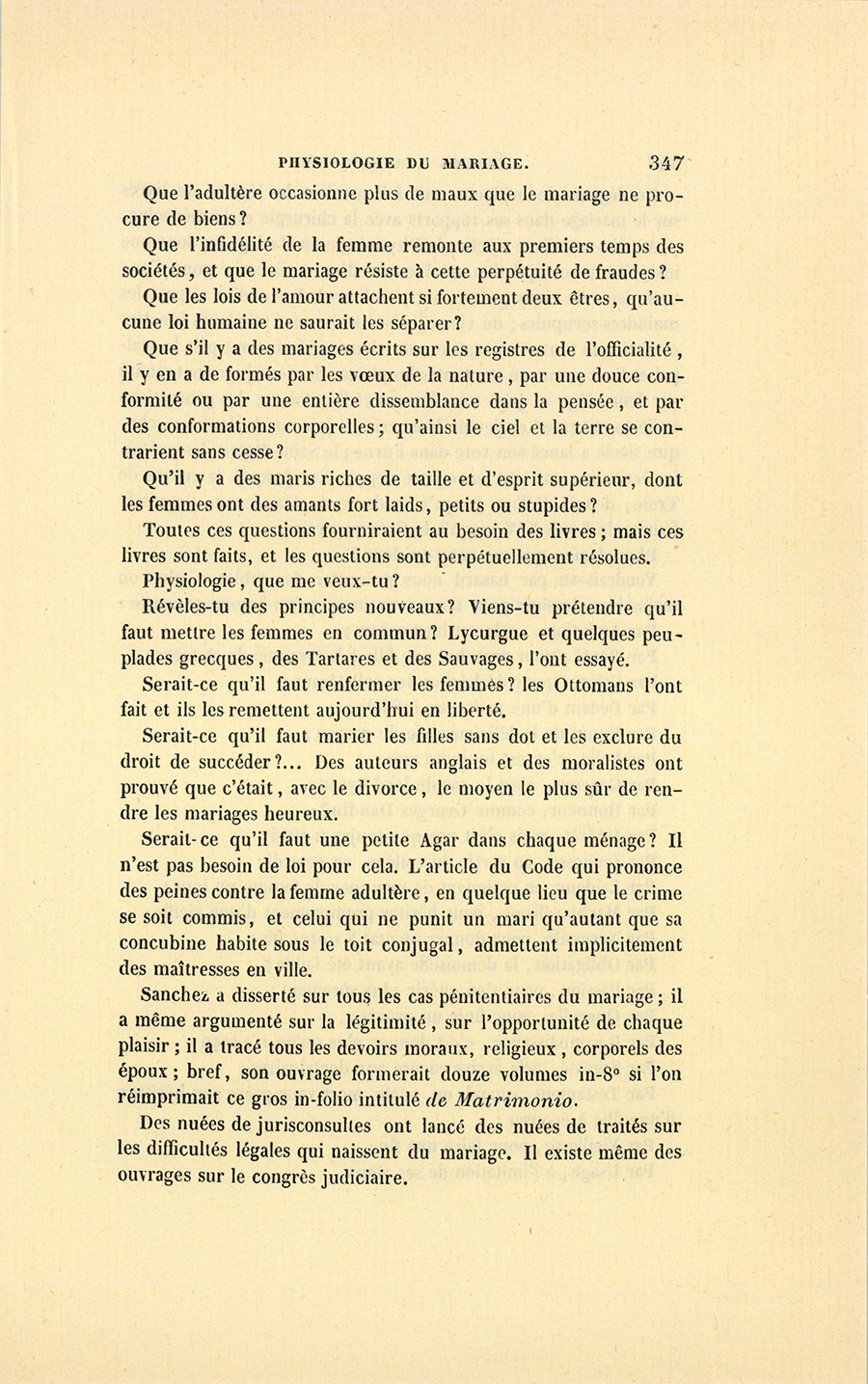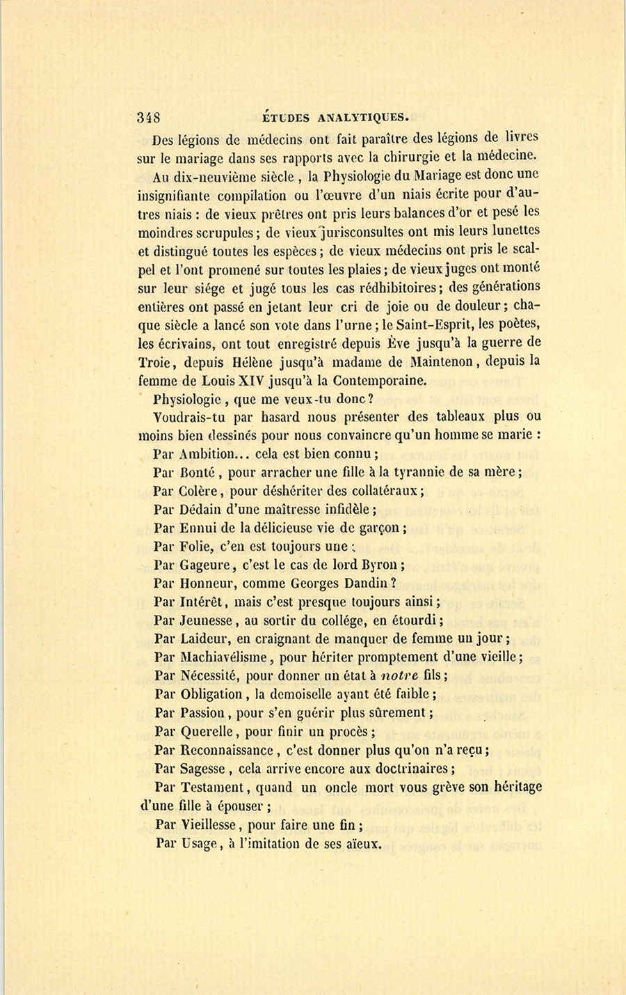 {p. 348} Des légions de médecins ont fait paraître des légions de livres sur le mariage dans ses rapports avec la chirurgie et la médecine.