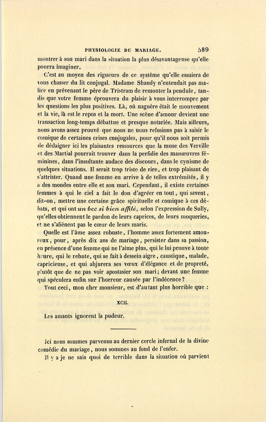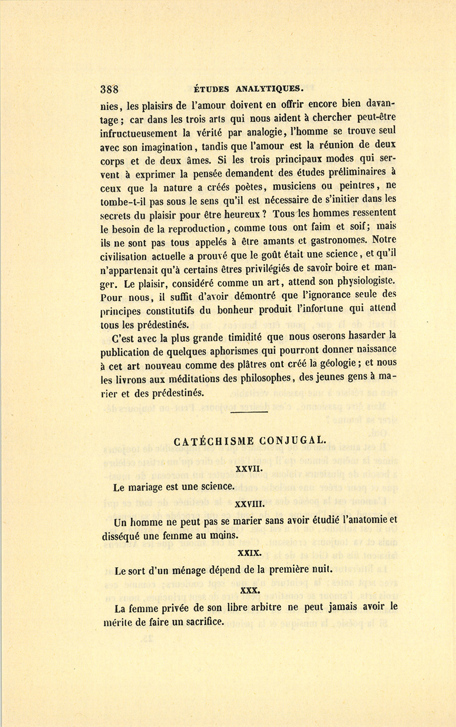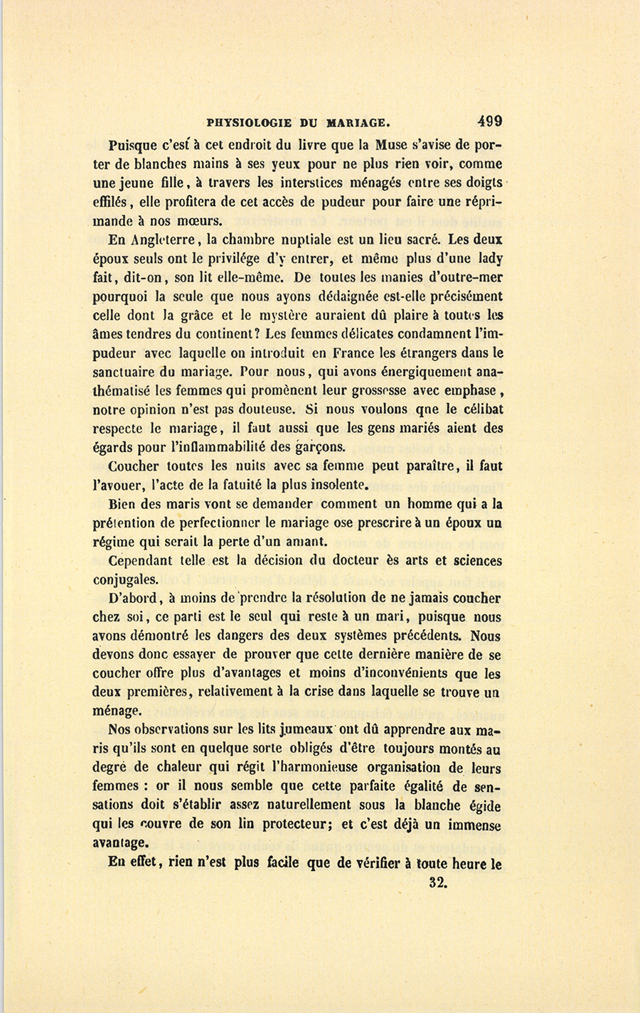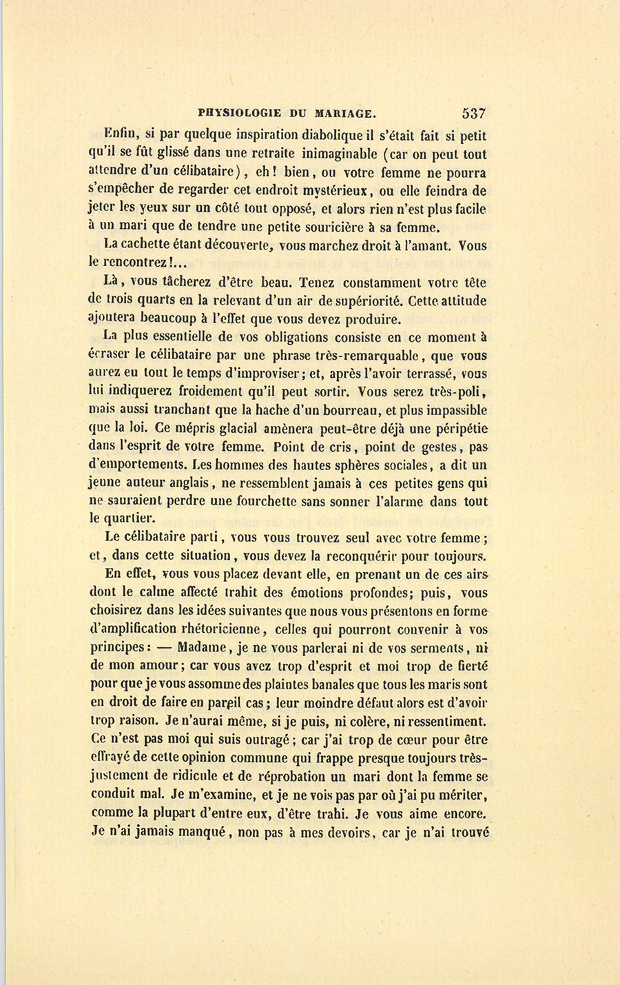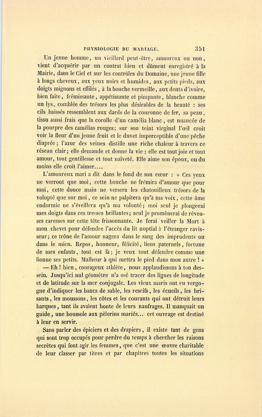 Ce n’est pas à vous que s’adresse la Physiologie du Mariage, puisque vous n’êtes pas mariés. Ainsi soit-il toujours !
