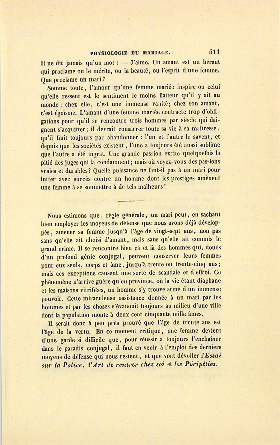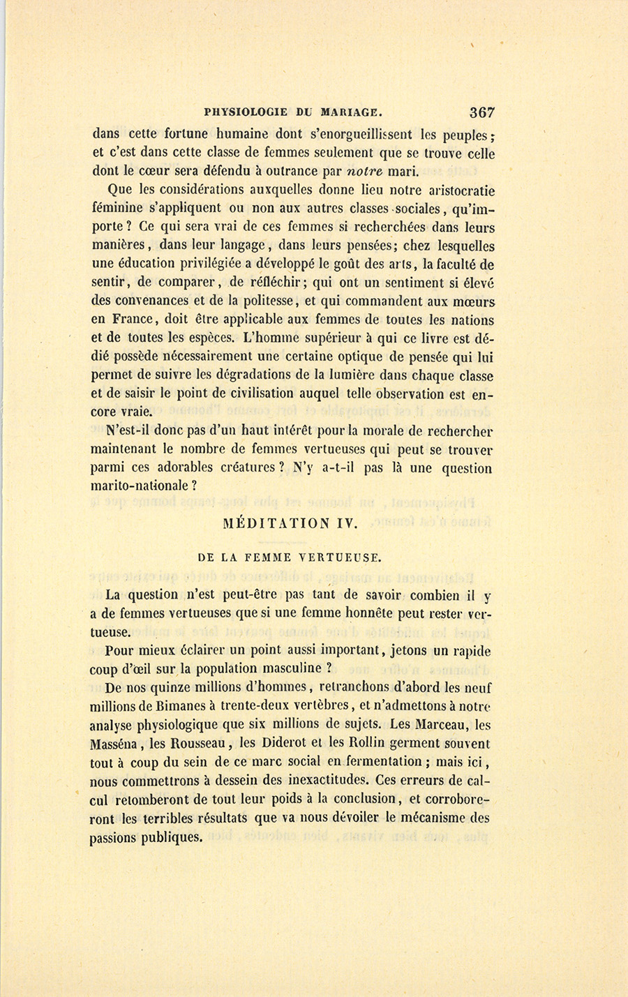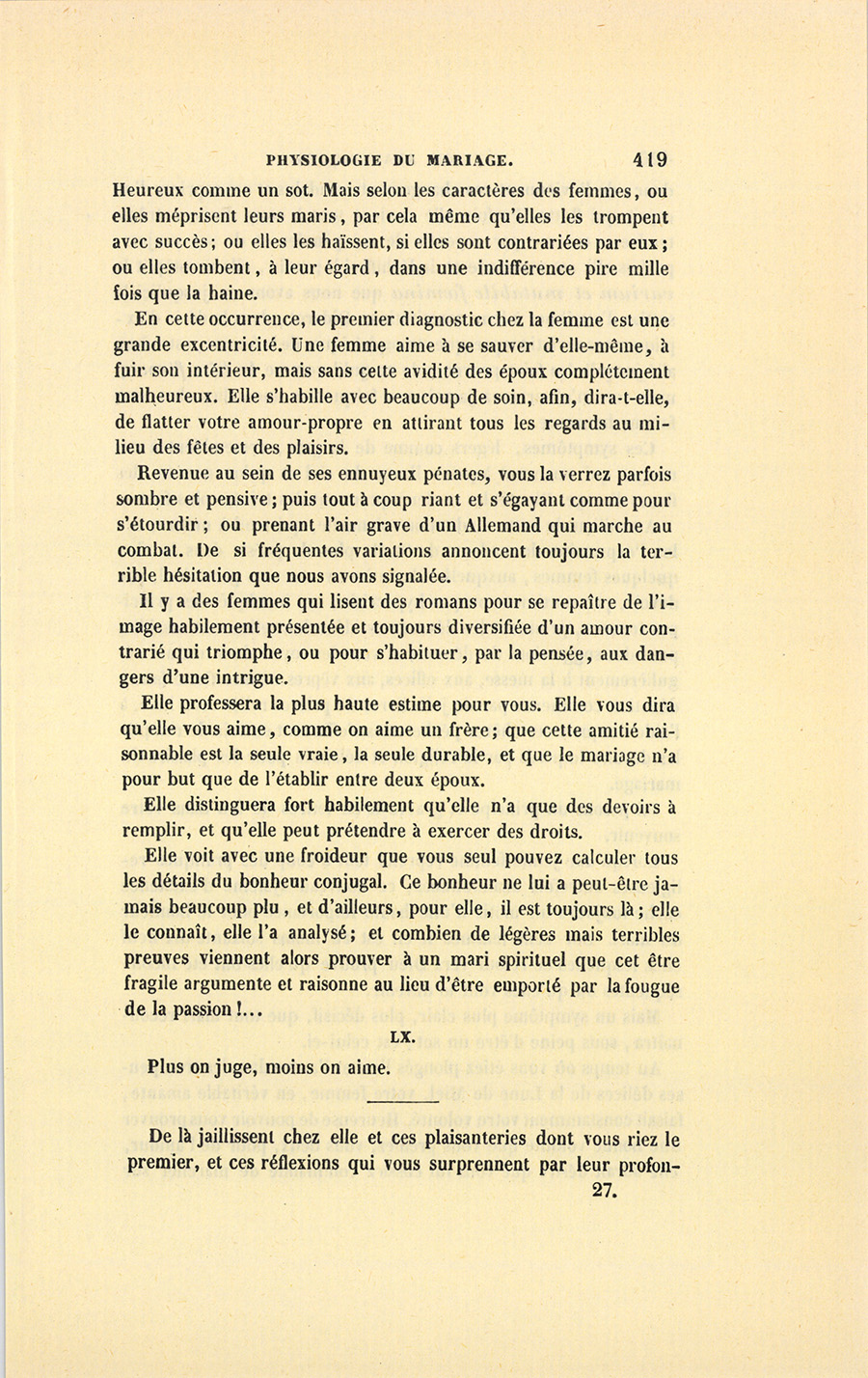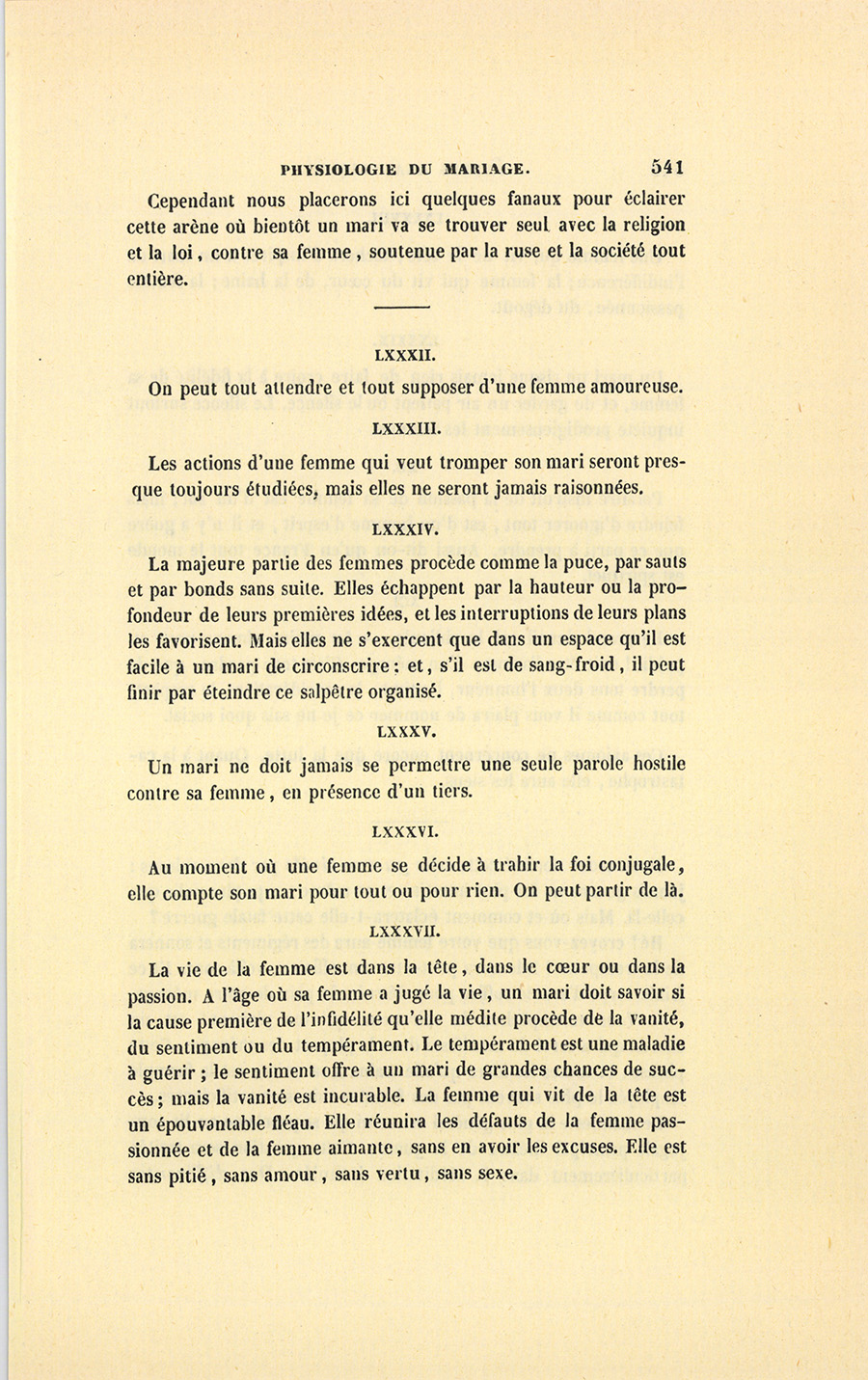 Ce n’est pas à vous que s’adresse la Physiologie du Mariage, puisque vous n’êtes pas mariés. Ainsi soit-il toujours !