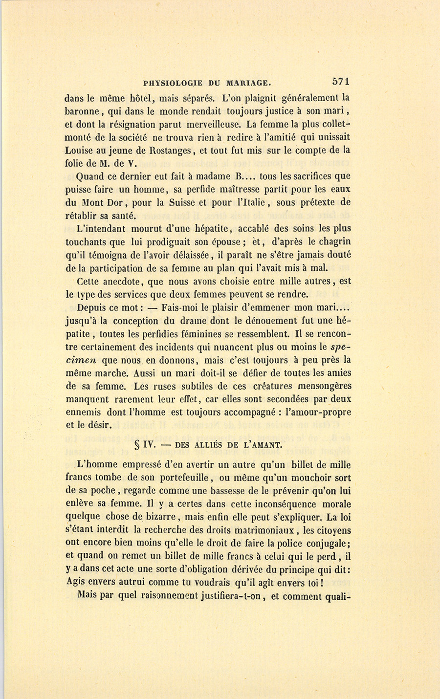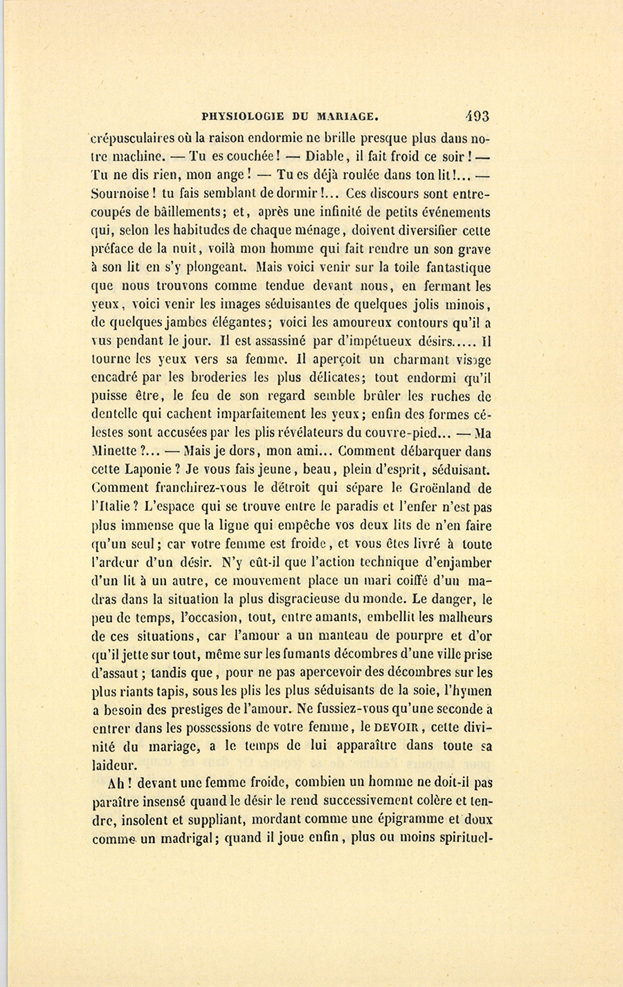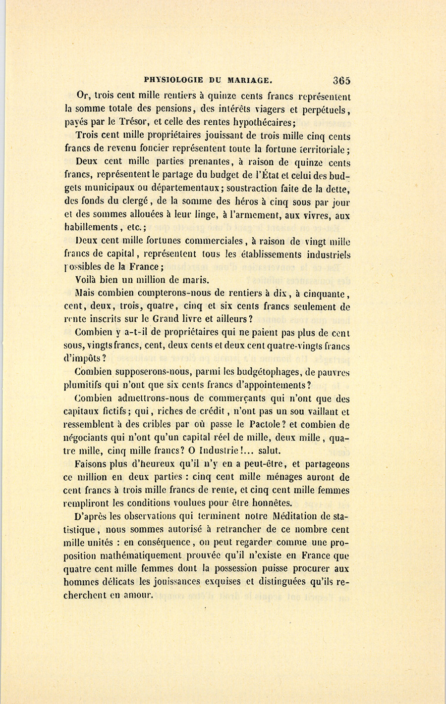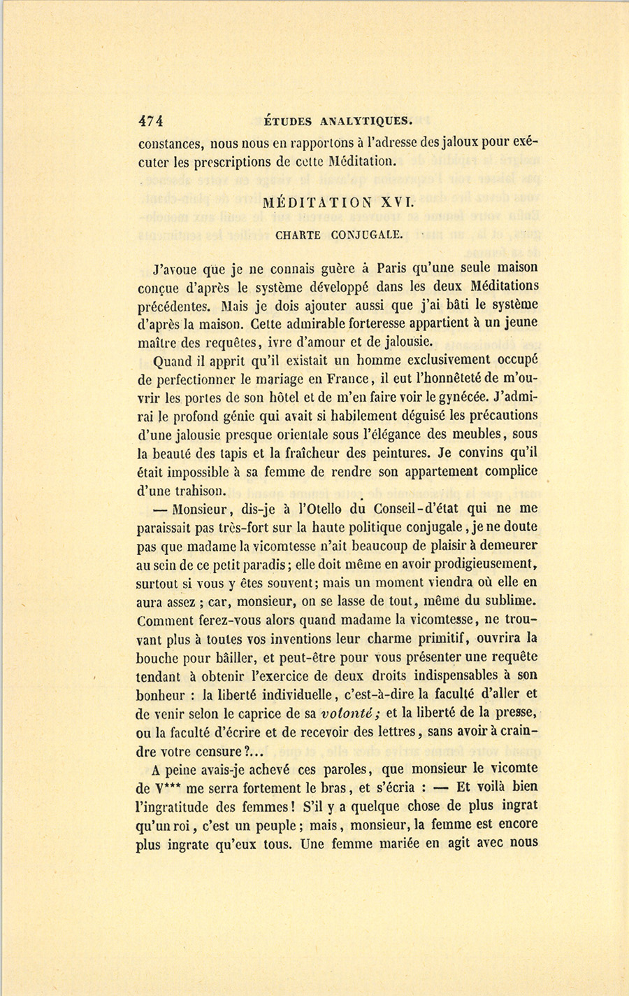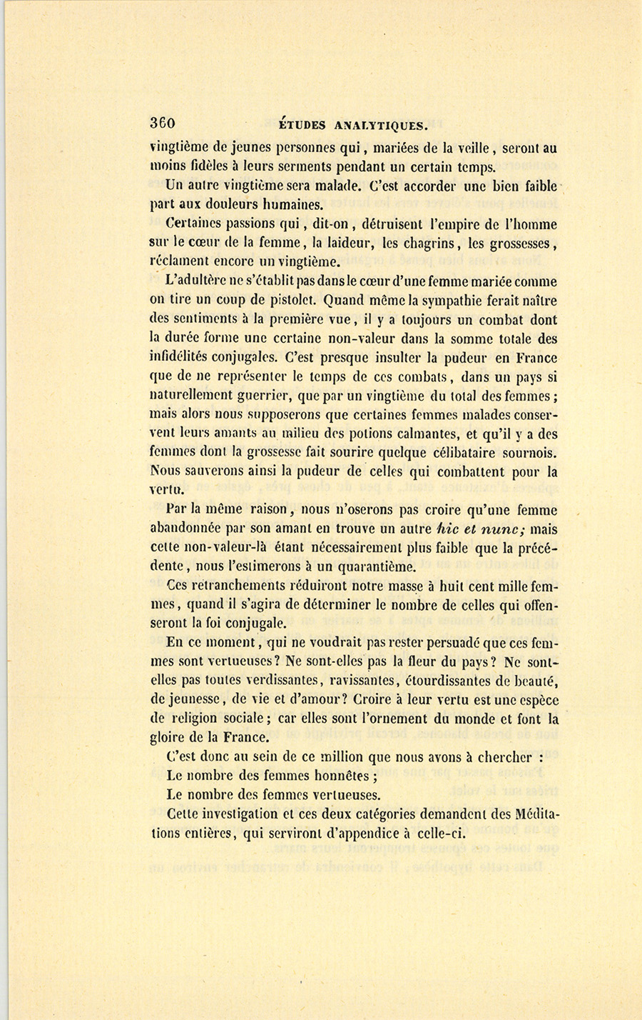 Ce n’est pas à vous que s’adresse la Physiologie du Mariage, puisque vous n’êtes pas mariés. Ainsi soit-il toujours !