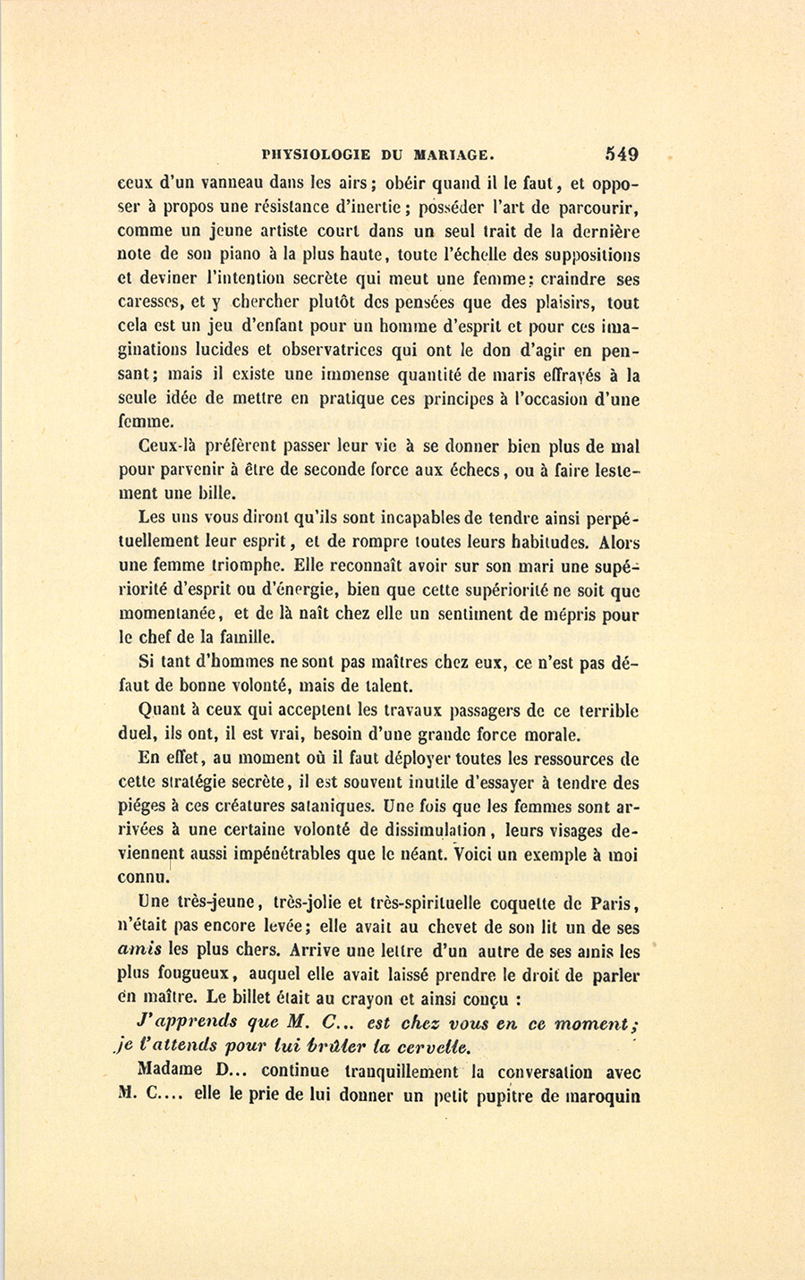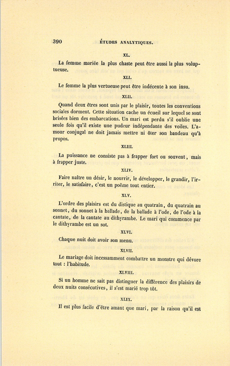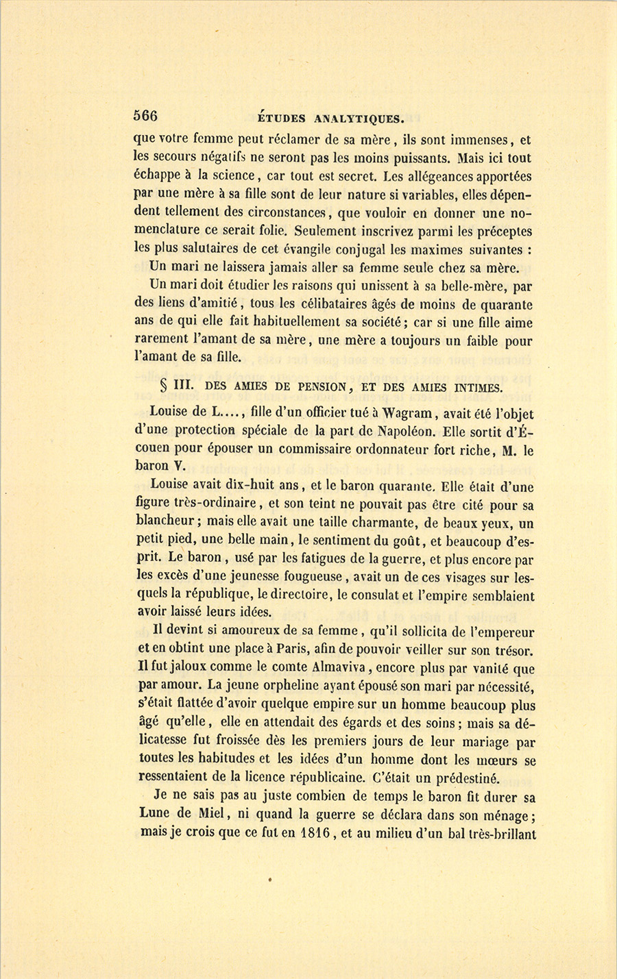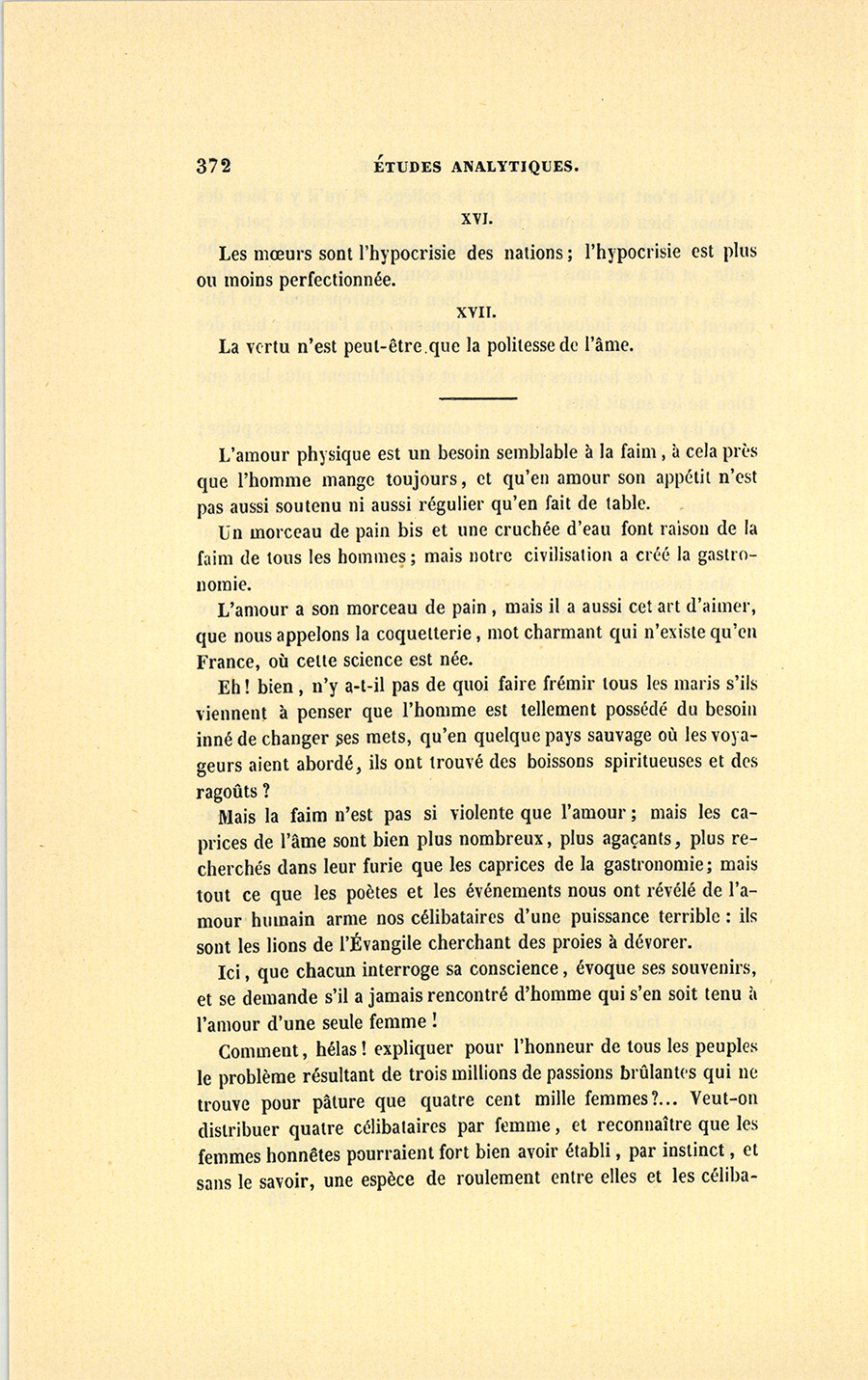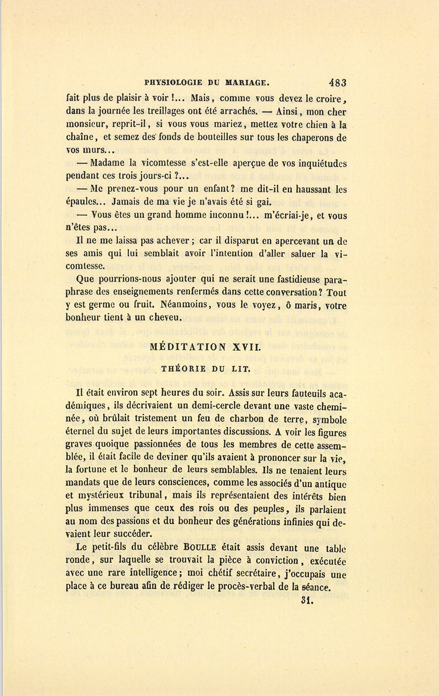 Ce n’est pas à vous que s’adresse la Physiologie du Mariage, puisque vous n’êtes pas mariés. Ainsi soit-il toujours !