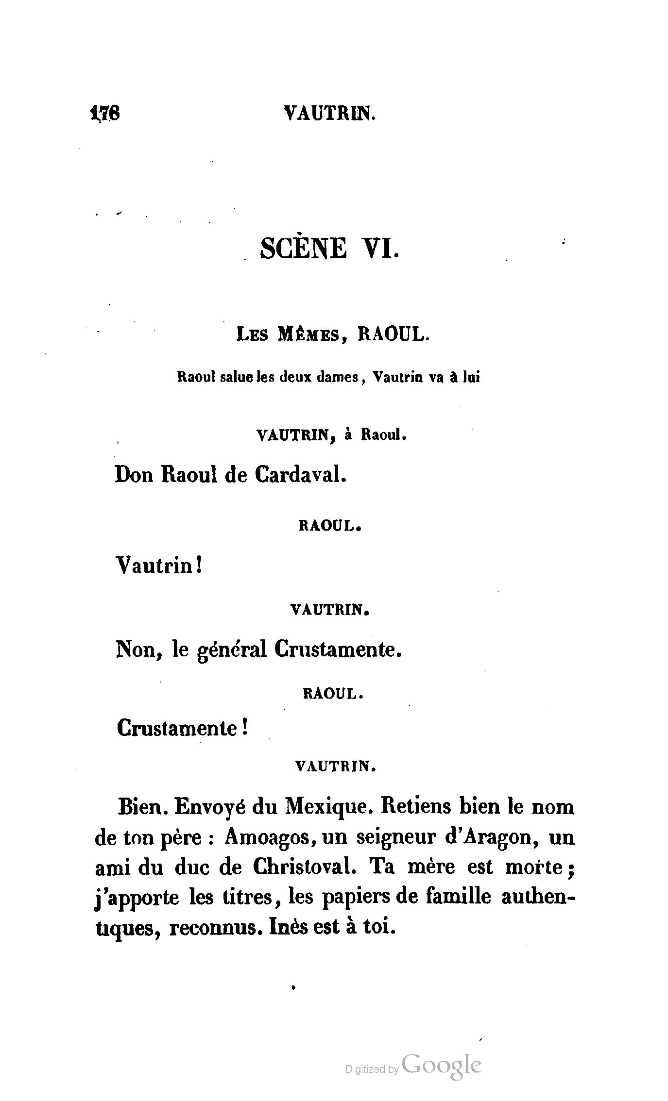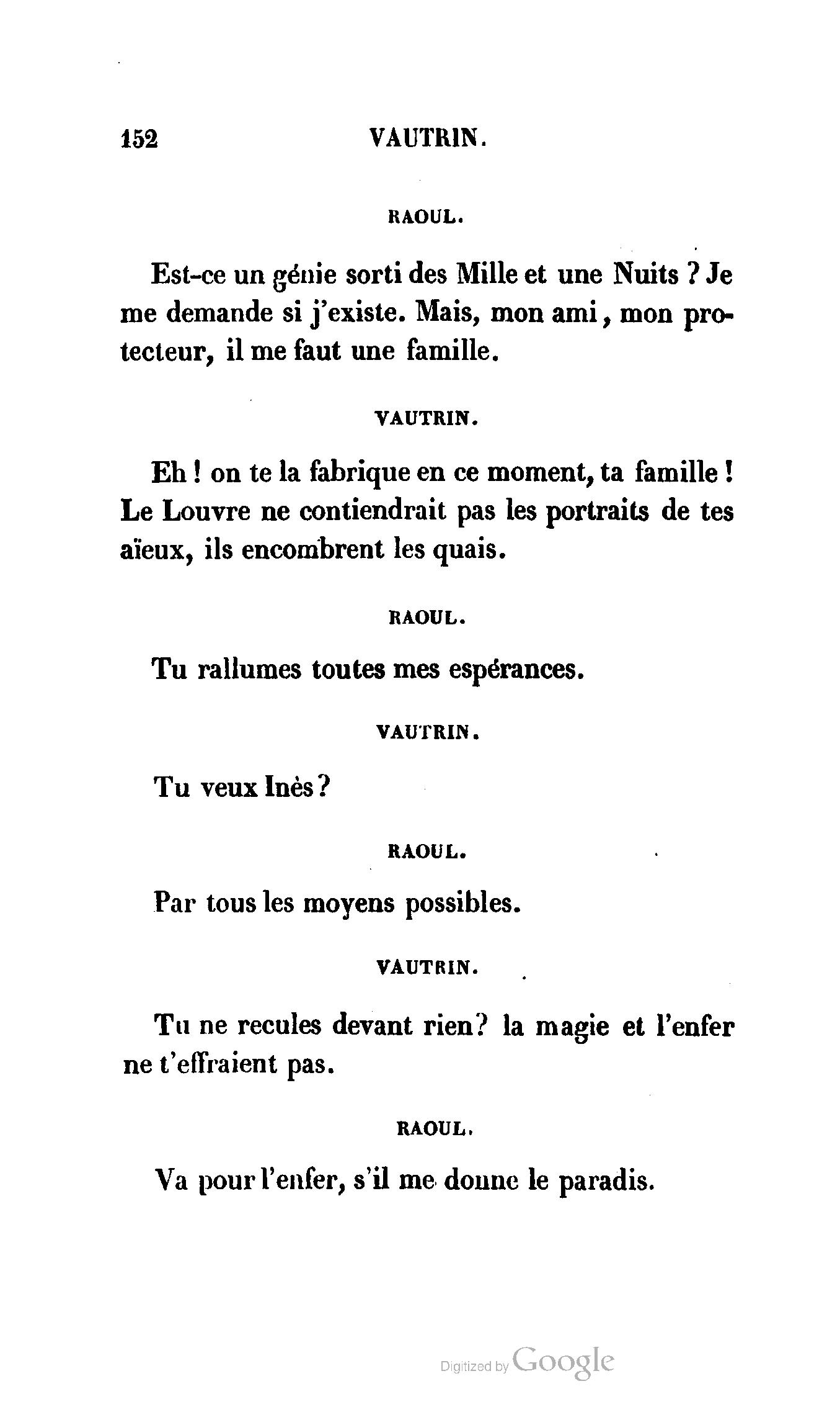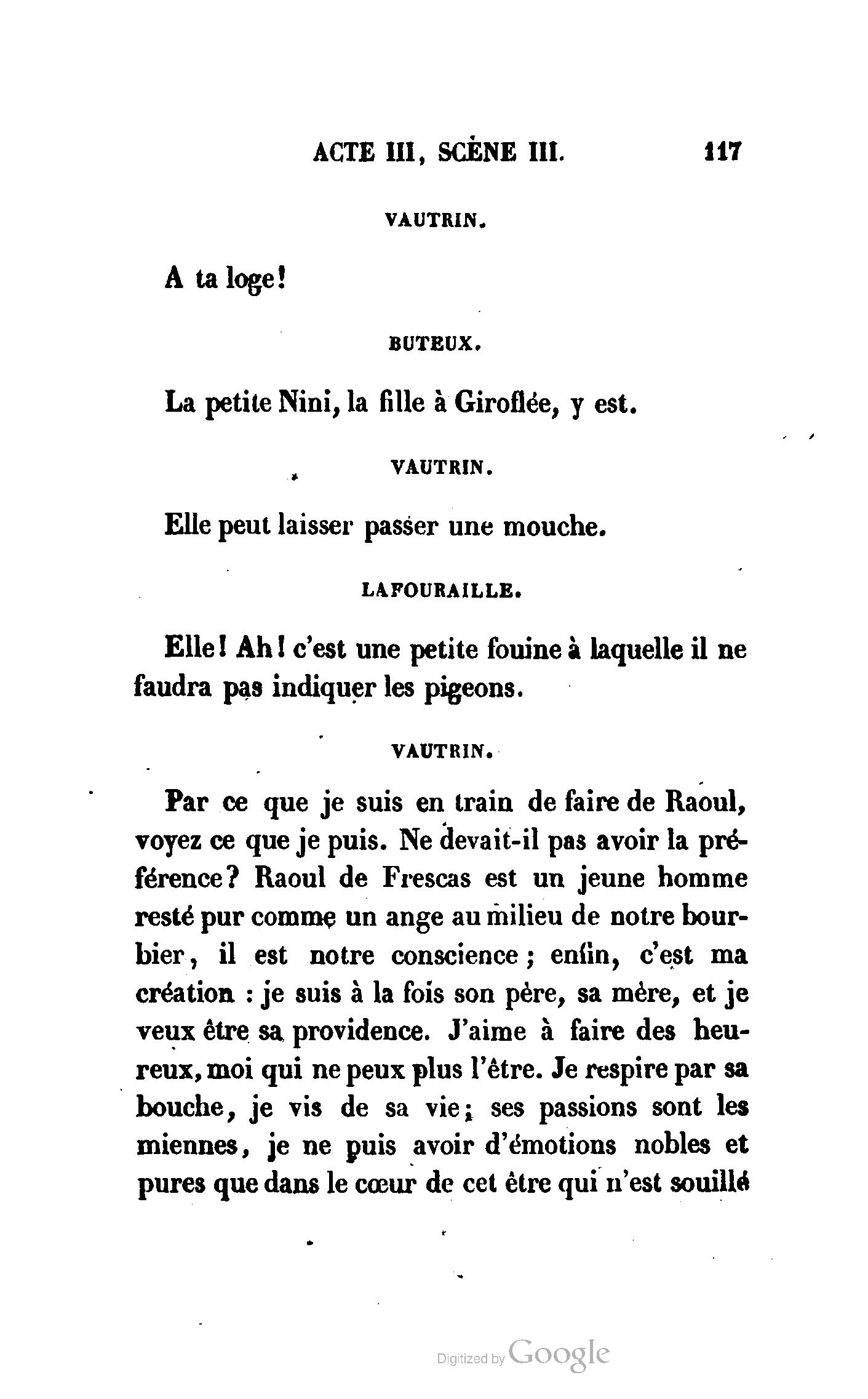 Enfin, Vautrin a presque deux mois, et, dans la serre parisienne, une nouveauté de deux mois prend deux siècles. La véritable et la meilleure préface de Vautrin sera donc le drame de Richard-Caur-d'Éponge, que l'administration permet de représenter, afin de ne pas laisser les rats occuper exclusivement les planches si fécondes du théâtre de la Porte-Saint-Martin.