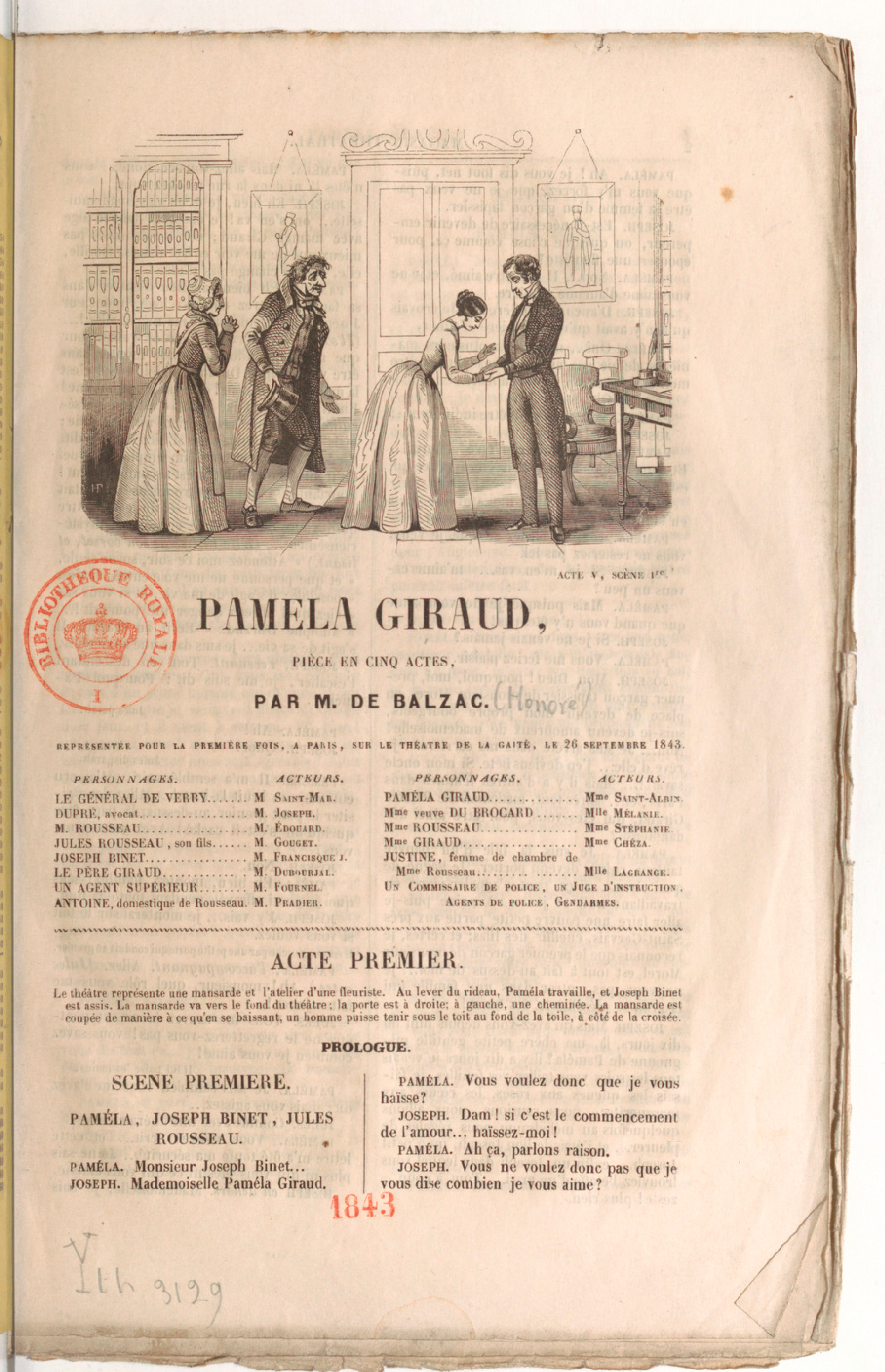 Représentée pour la première fois, à Paris, sur le Théâtre de la Gaîté, le 26 septembre 1843