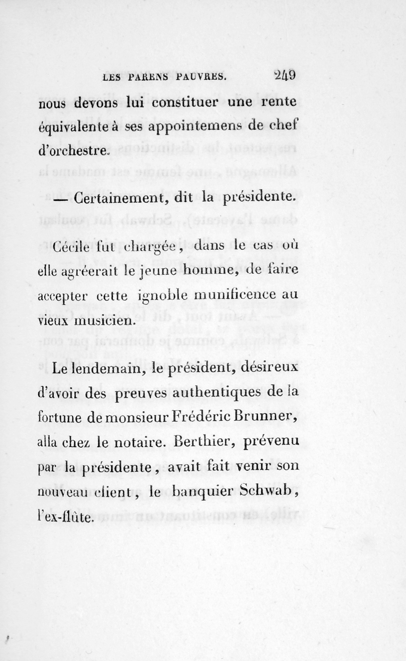 Les deux officiers ministériels quittèrent donc la présidente en l’engageant à se défier de Fraisier, sur qui naturellement ils avaient pris des renseignements.