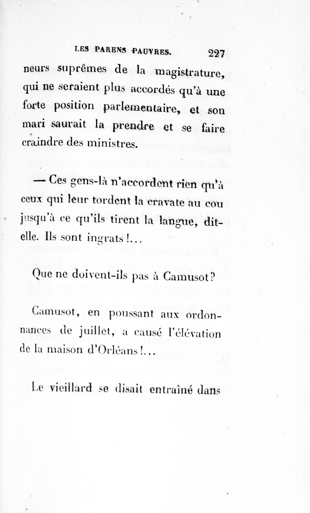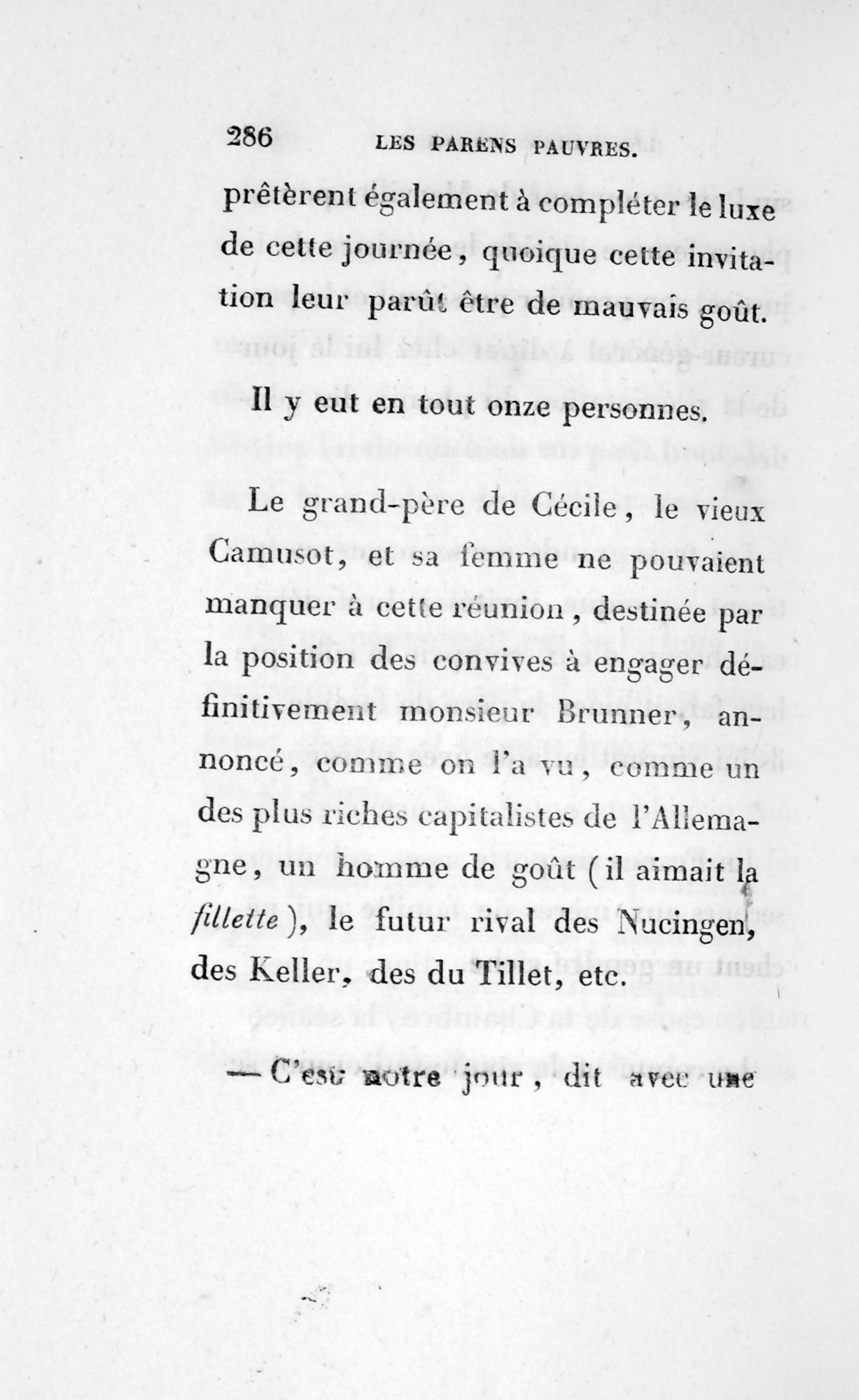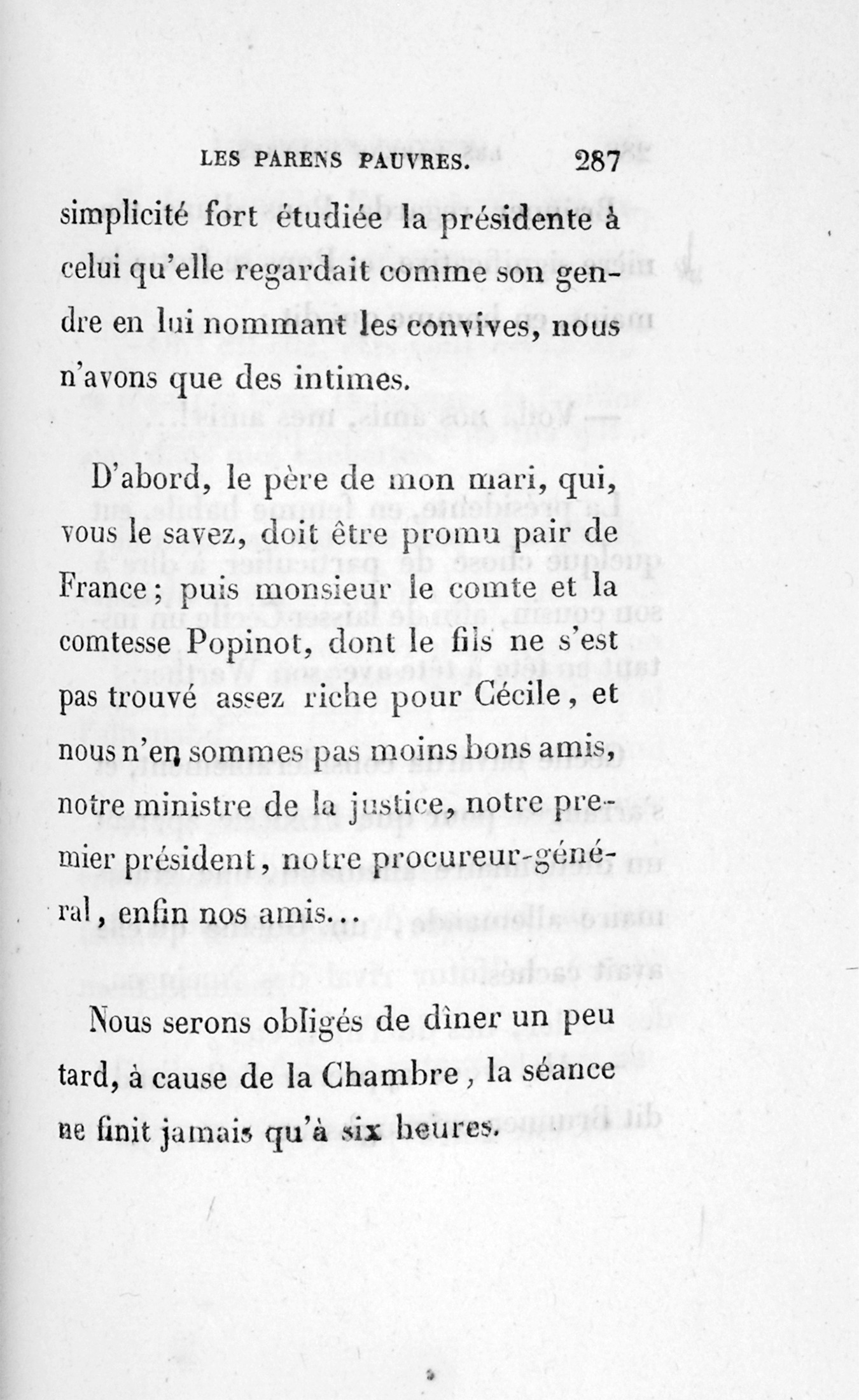 p. 161 Il suffira d’assister à une conversation tenue chez le comte Popinot, qui montrait, il y a peu de jours, sa magnifique collection à des étrangers 236 Erreur du Pétion : « étragers » au lieu de « étrangers ». .