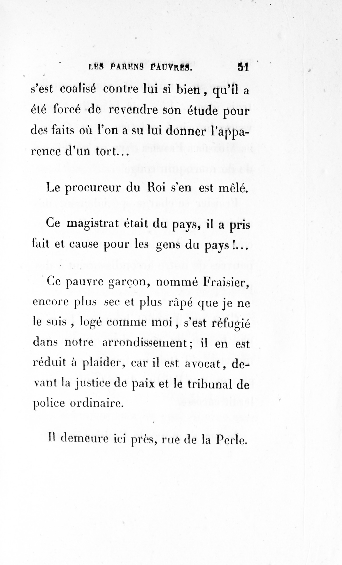 Fraisier, nommé juge de paix, est très-intime dans la maison du président et très-apprécié par la présidente, qui n’a pas voulu lui voir épouserla fille à Tabareau; elle promet infiniment mieux p. 160 que cela à l’habile homme à qui, selon elle, elle doit non-seulement l’acquisition des prairies de Marville et le cottage, mais encore l’élection de monsieur le président, nommé député à la réélection générale de 1846.